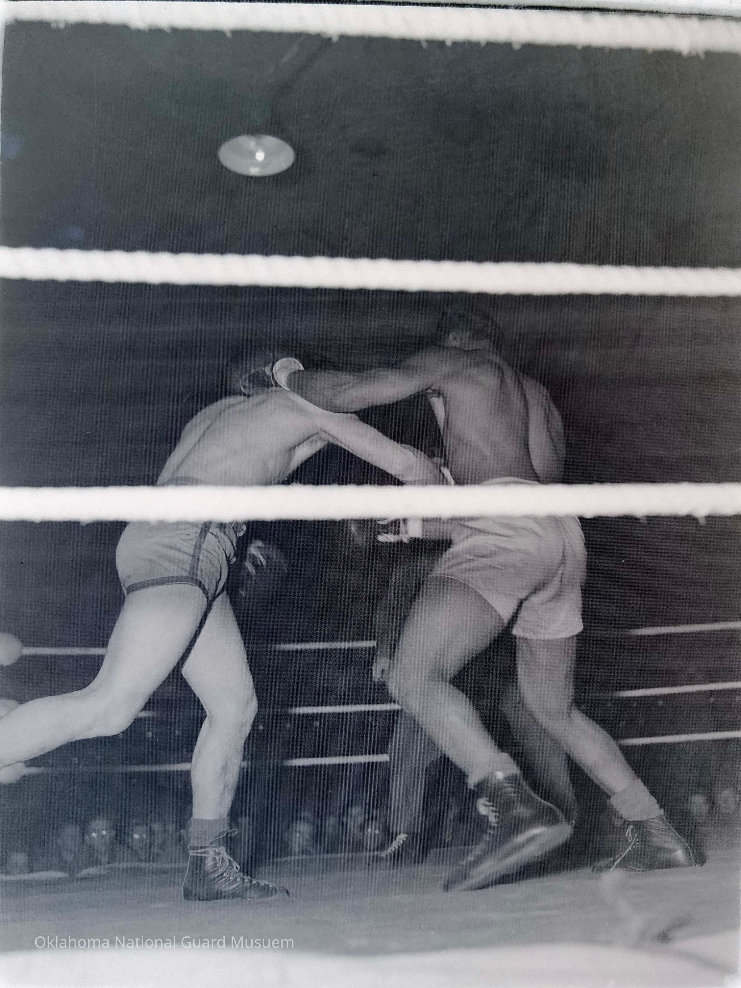 Negative of soldiers boxing