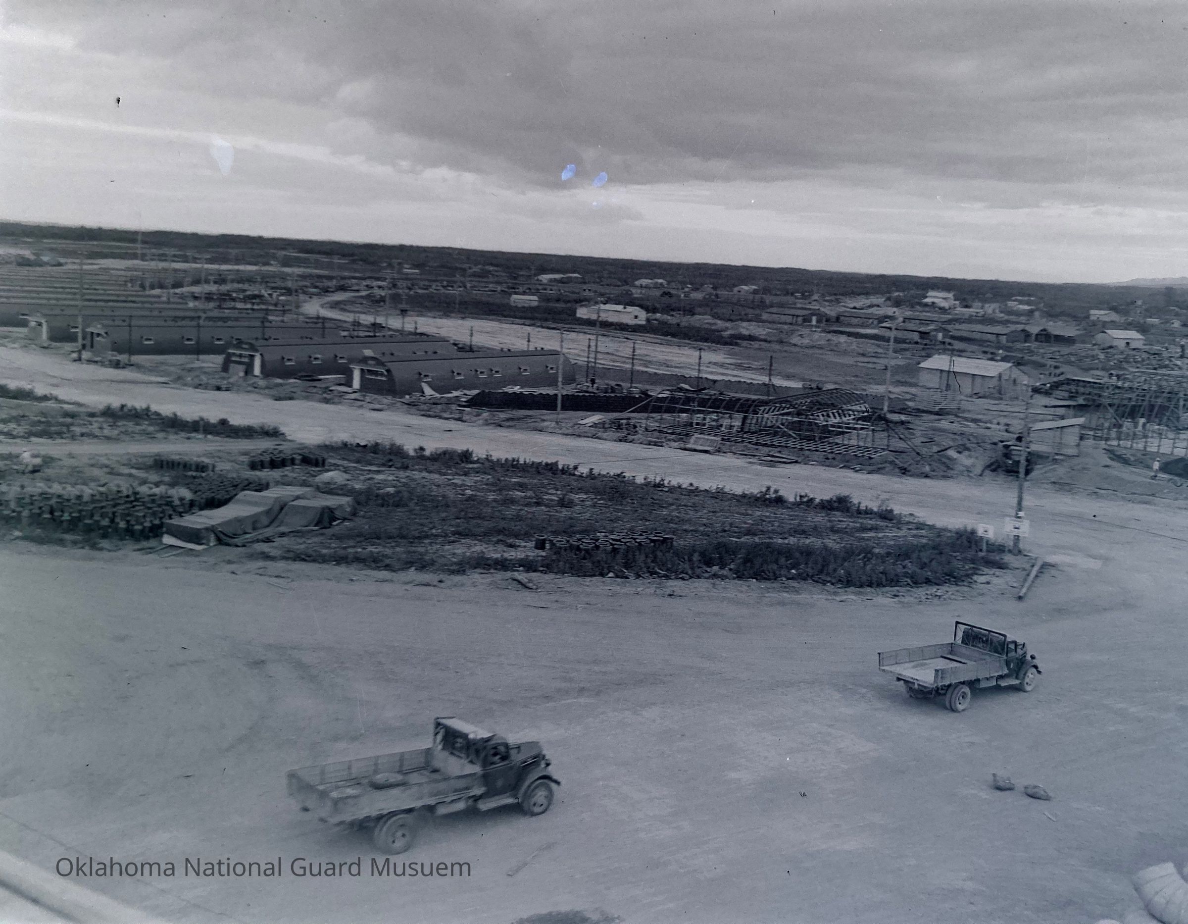 Aerial photographs, Military camps, Construction, Trucks