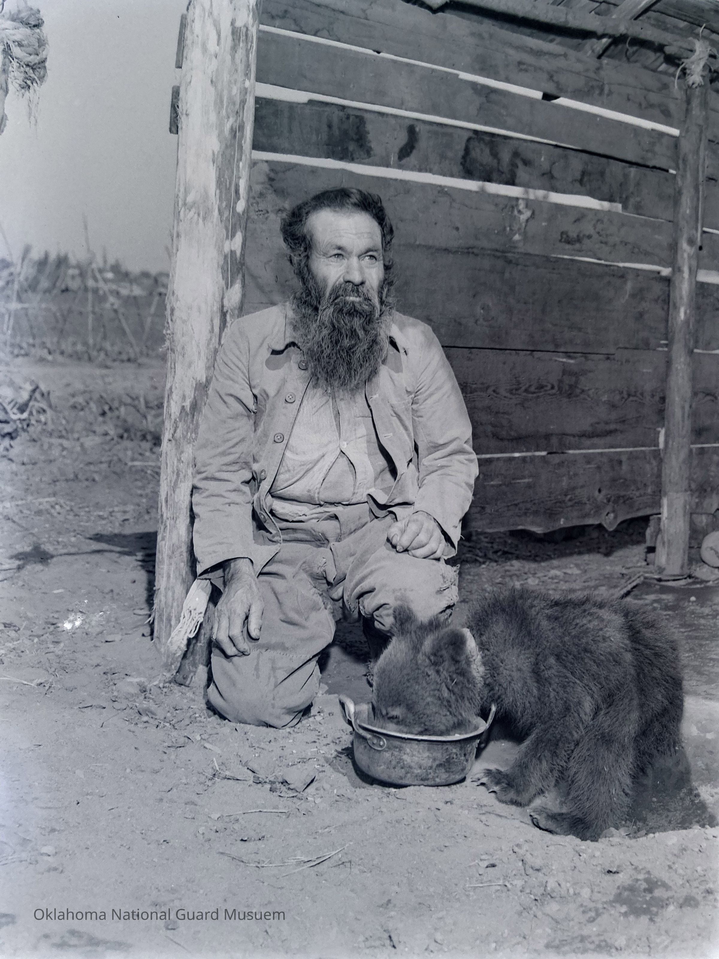 Negative of Ainu man who captured bear cub on Hokkaido, Japan. The bear would later become the 45th's mascot before shipping him to the Oklahoma City Zoo.Photograph Details