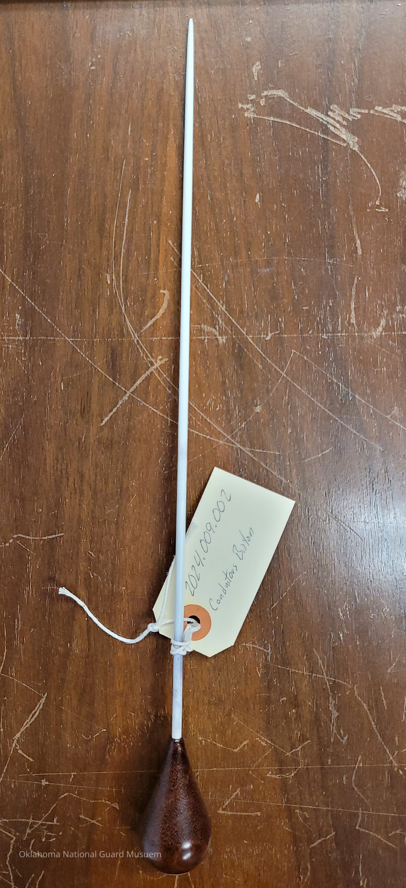 Band conductor's baton belonging to Shanti Simon, Director of Bands at the University of Oklahoma. She also serves as the Public Affairs Officer for the 137th Oklahoma Air National Guard Wing at Will Rodgers.