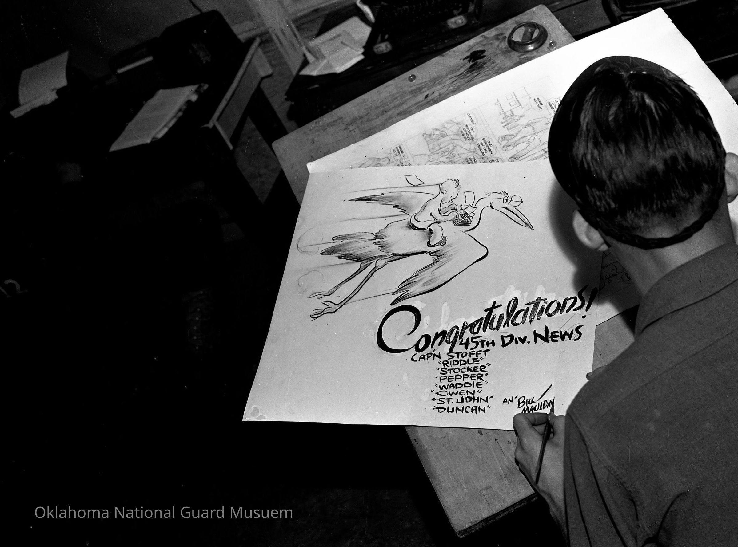 Bill Mauldin at his drawing board