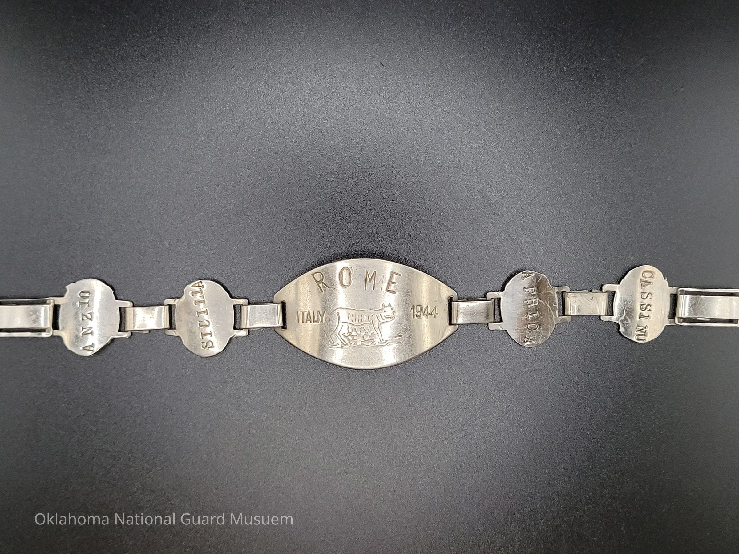 Bracelet made in the field with the landings the 45th Infantry Division took part in during the Italian Campaign