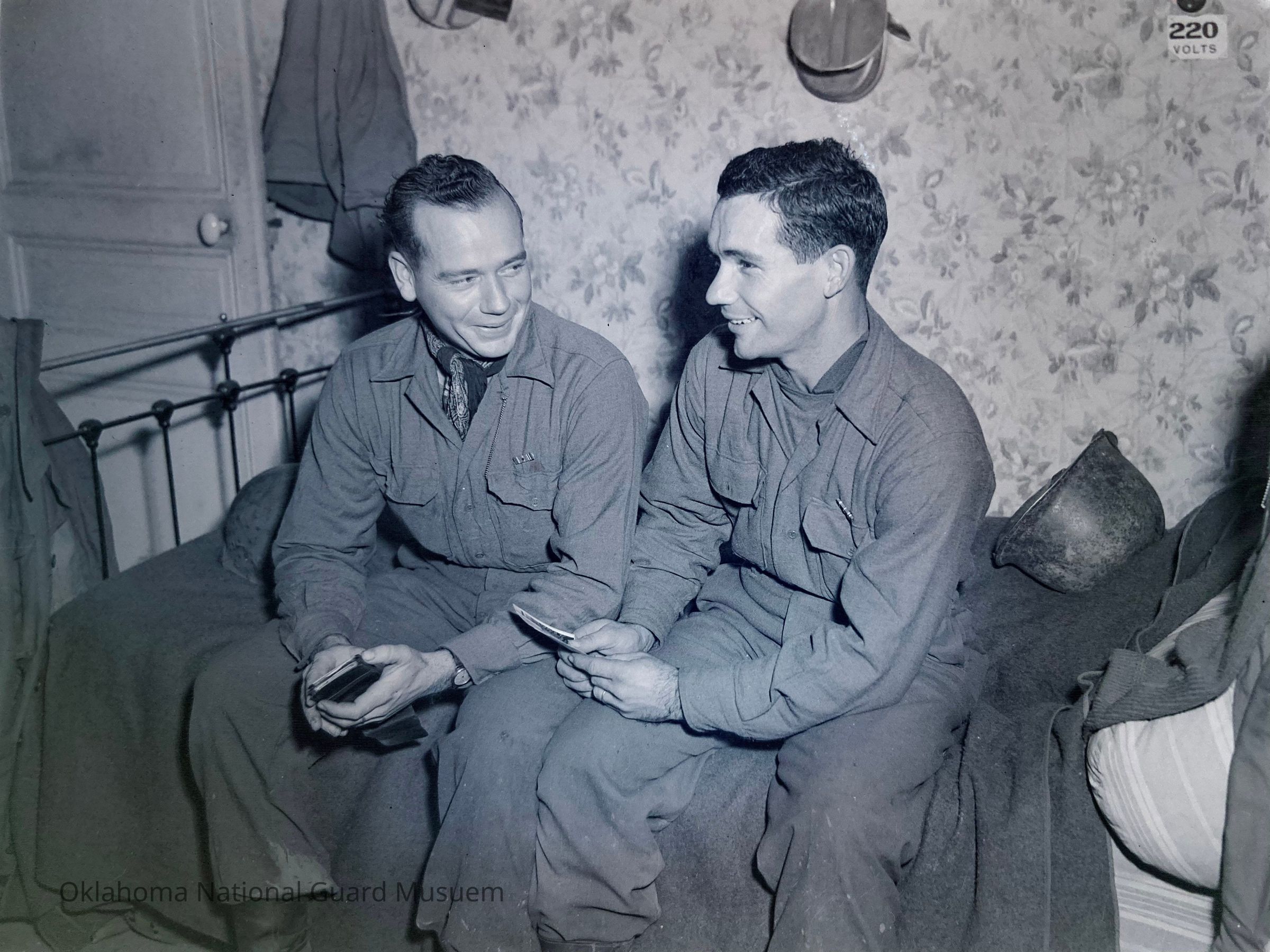 45th Division News Vol. V No. 17 "It was just like the movies. Albert Pitts walked out of Company I's orderly room and bumped into his brother, Daniel Pitts, in the hall. They hadn't seen each other in almost a year and didn't know they were in adjoining companies in the same Thunderbird battalion. Albert (left) and Daniel (right) looking over family photos."Made/Created