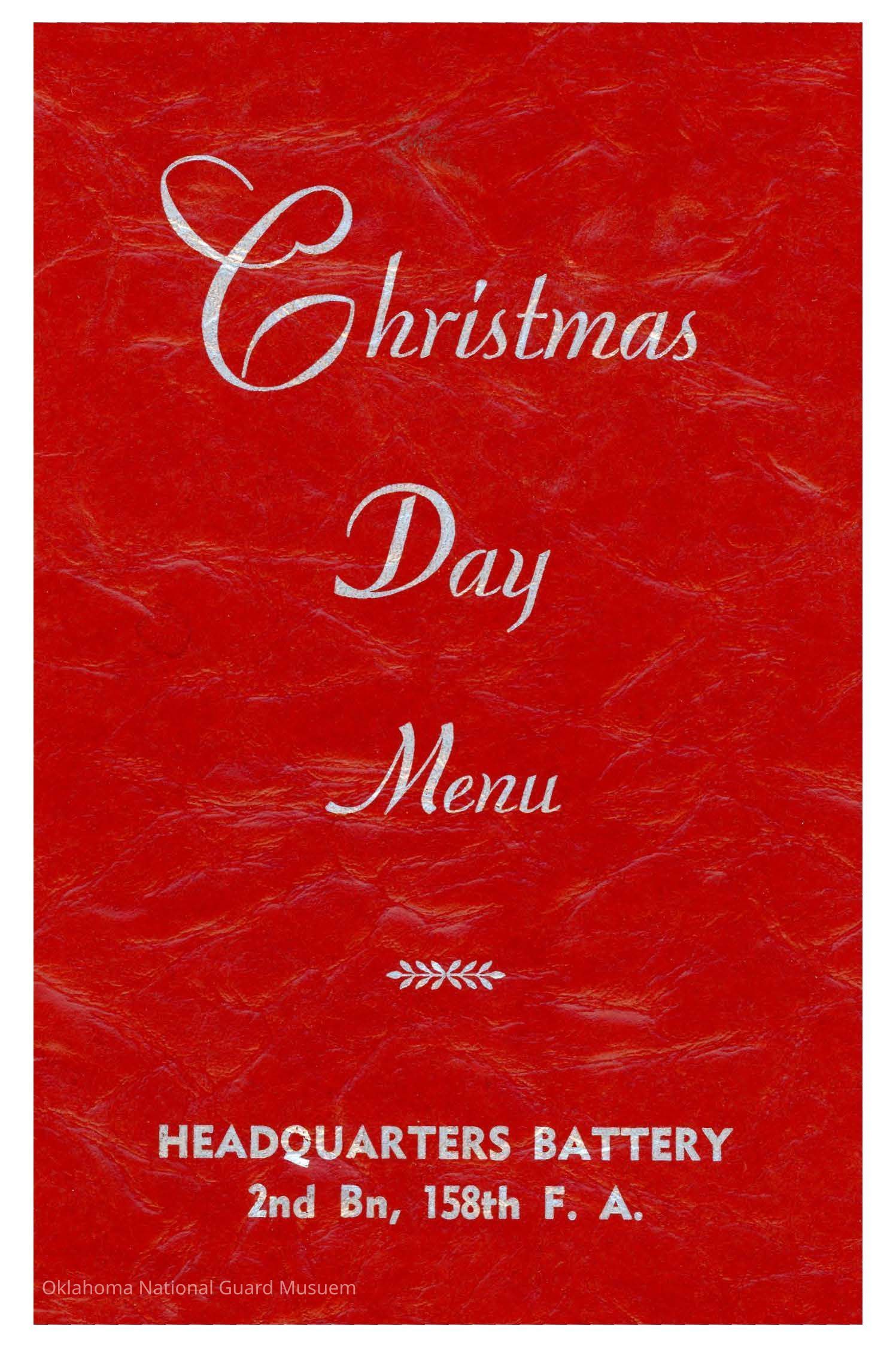 Christmas menu and roster for Headquarters Battery 158th Field Artillery