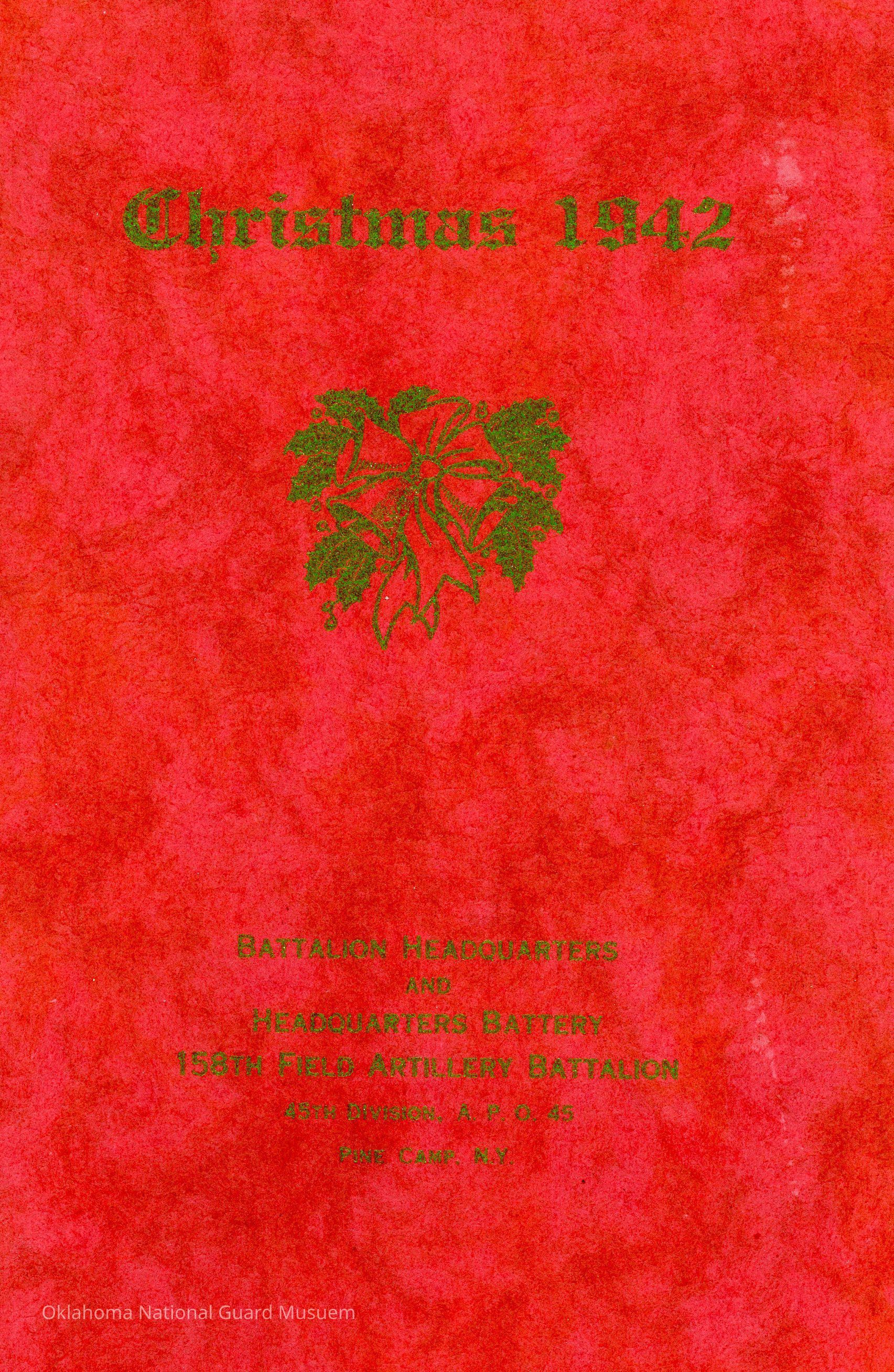 Christmas menu and roster for Battalion Headquarters and Headquarters Battery 158th Field Artillery