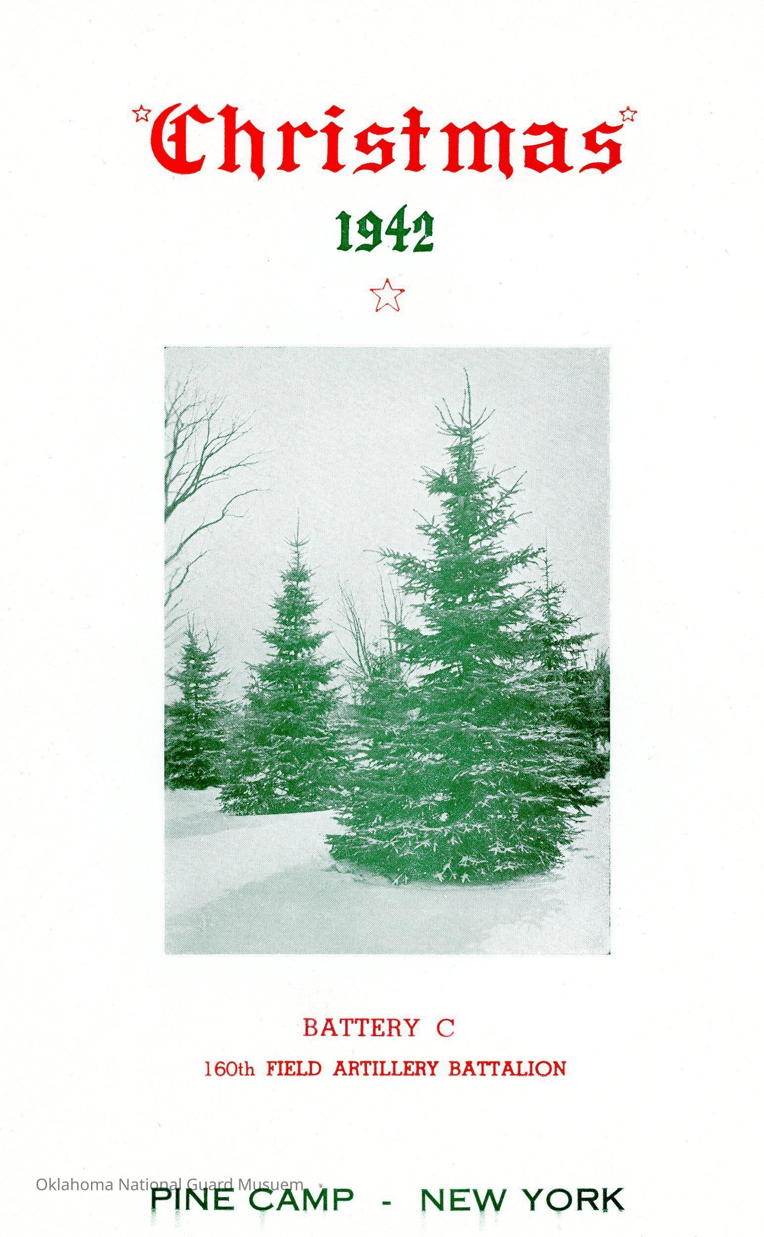 Christmas menu and roster for Battery C 160th Field Artillery