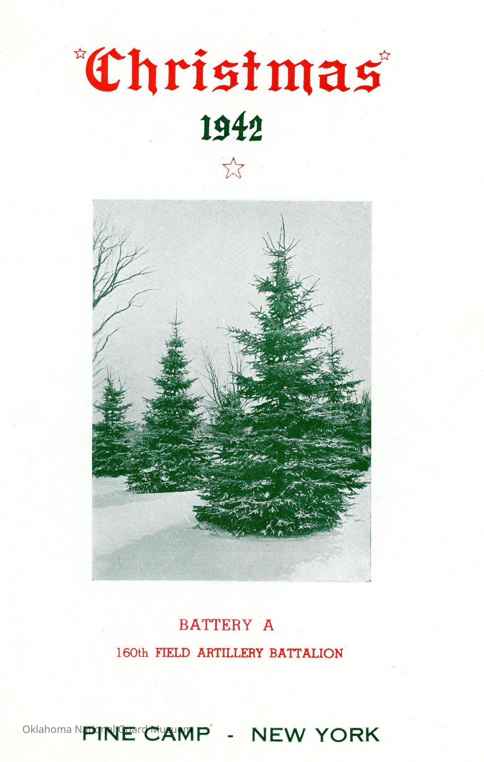 Christmas menu and roster for Battery A 160th Field Artillery