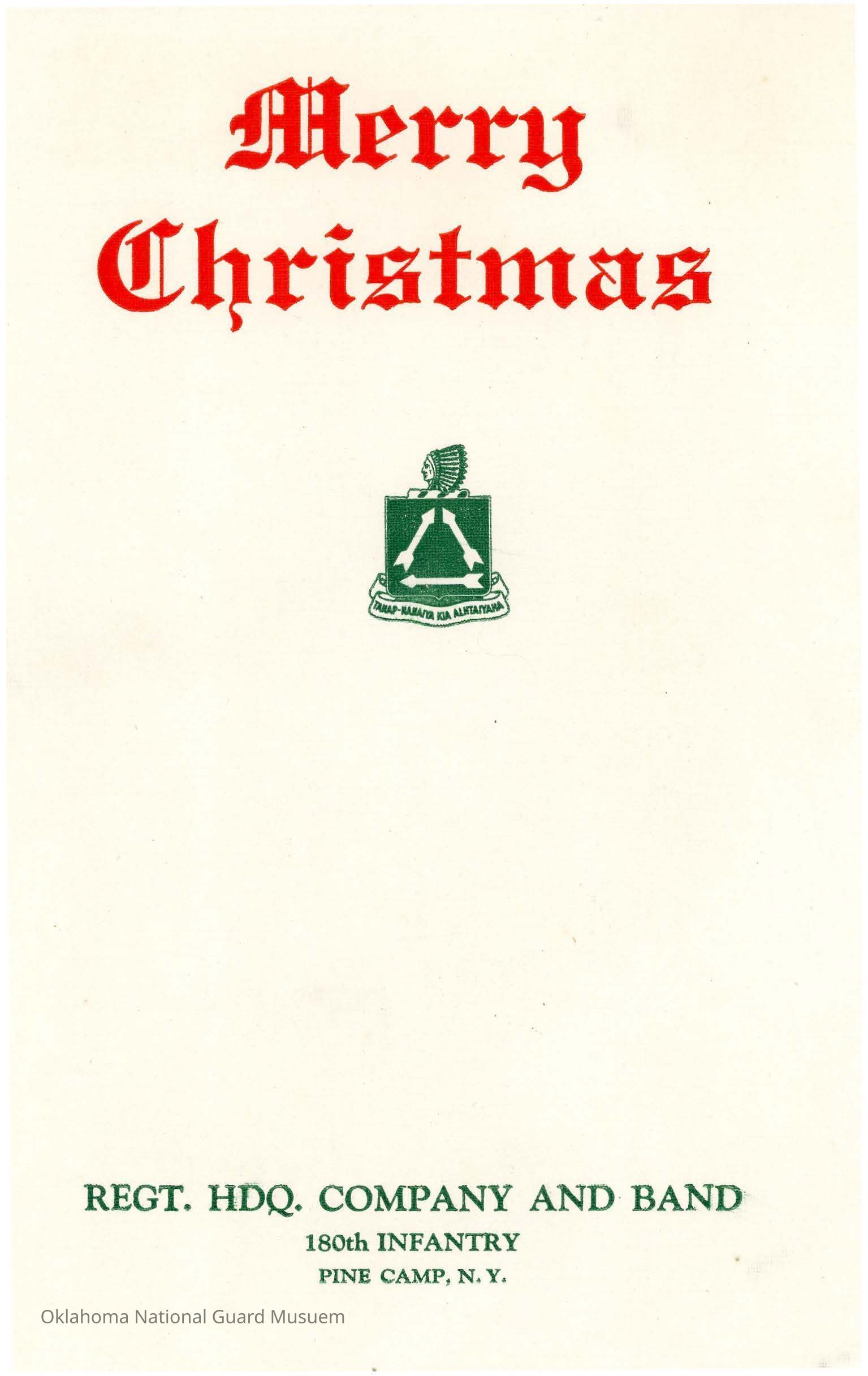 Christmas menu and roster for the 180th Infantry Band and Regiment Headquarters Company