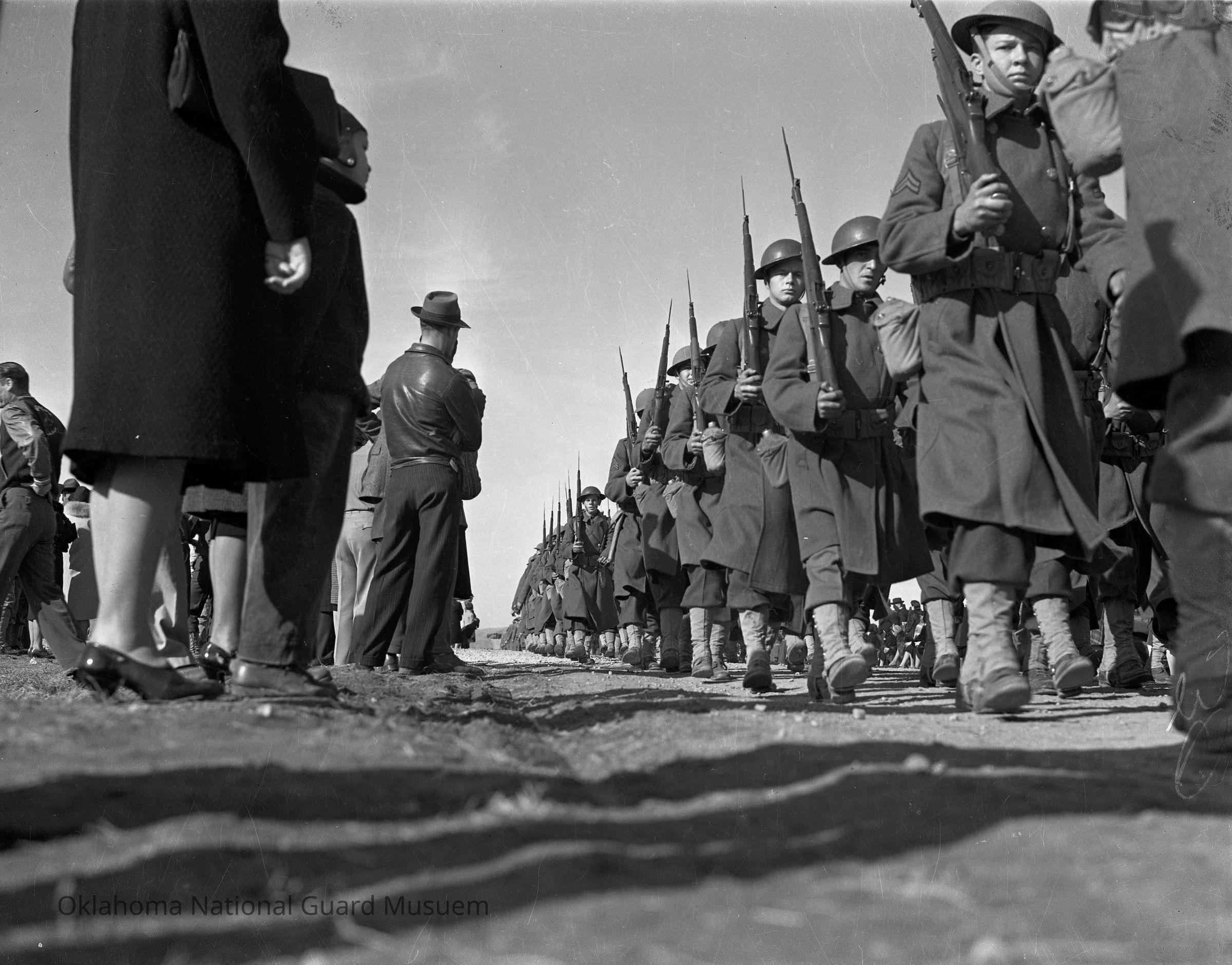 Soldiers, Marching, Rifles, Roads, Crowds