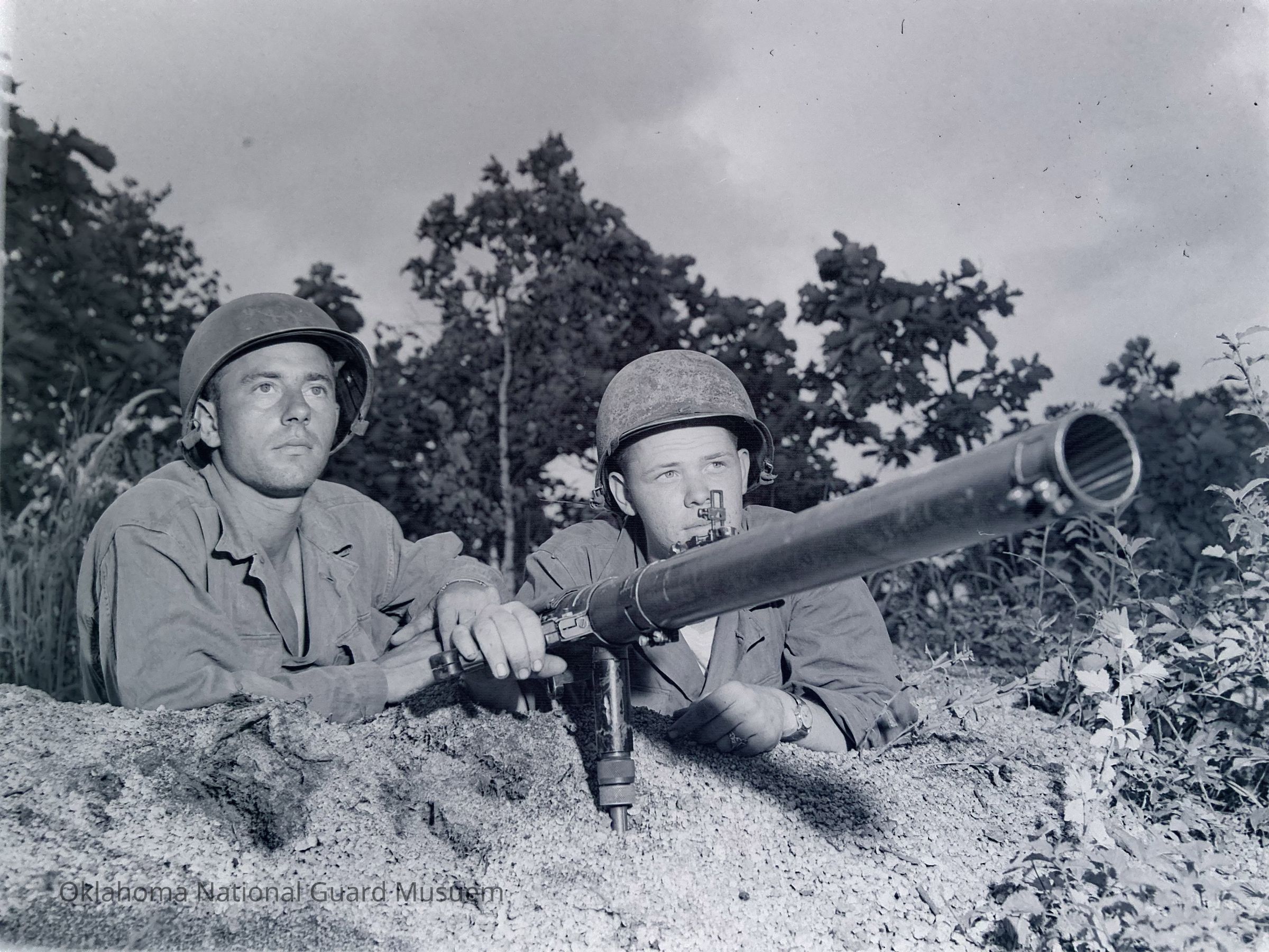 Negative of a crew with recoilless rifle on Hokkaido, Japan