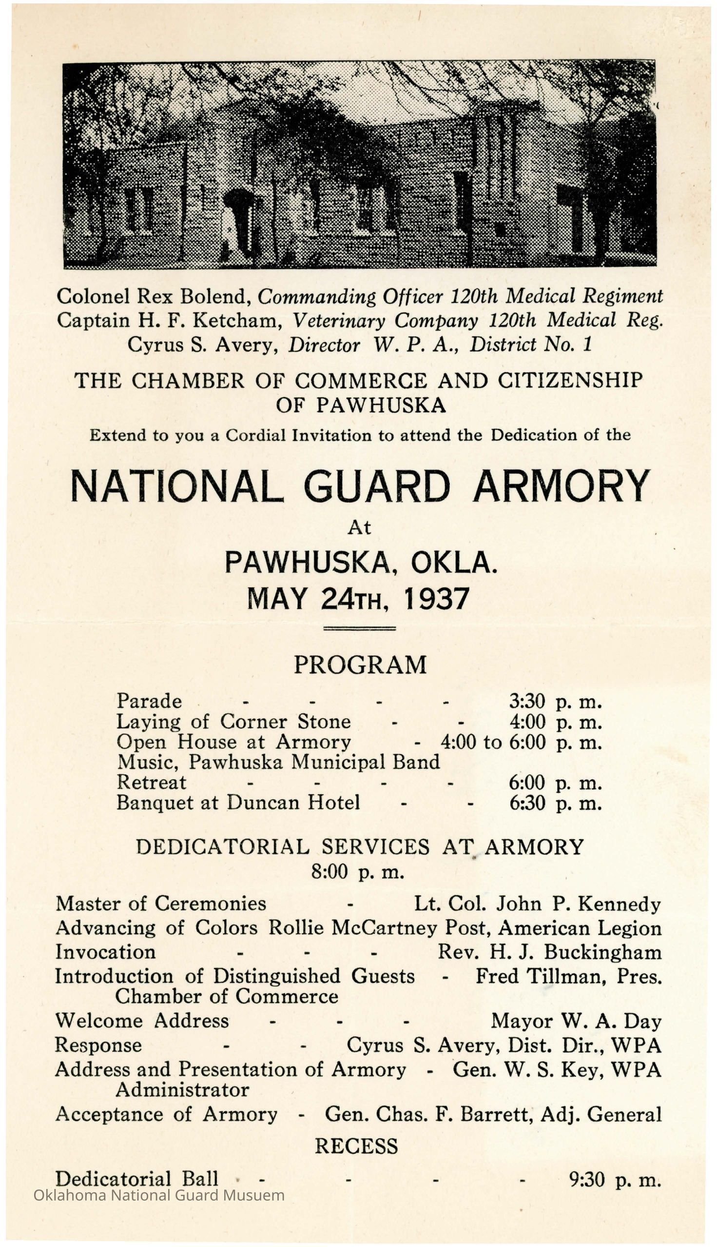 Dedication program for the armory in Pawhuska