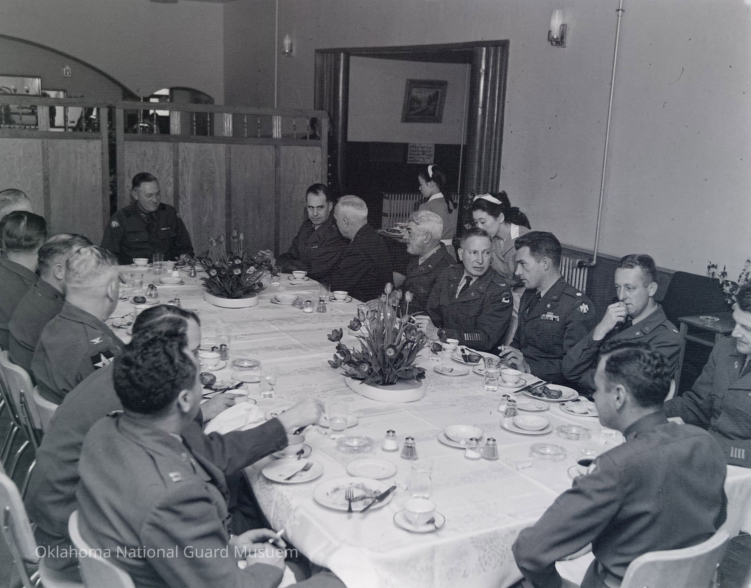 Soldiers, Generals, Talking, Dinner parties, Tablecloths, Dining tables, Flower arrangements, Dining, Officers, Military