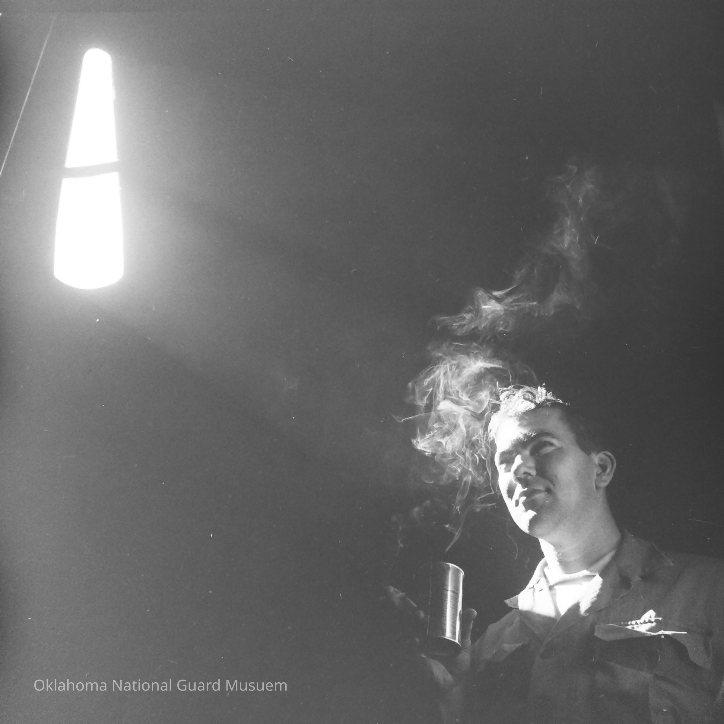 Negative of a dramatically lit soldier with cigarette