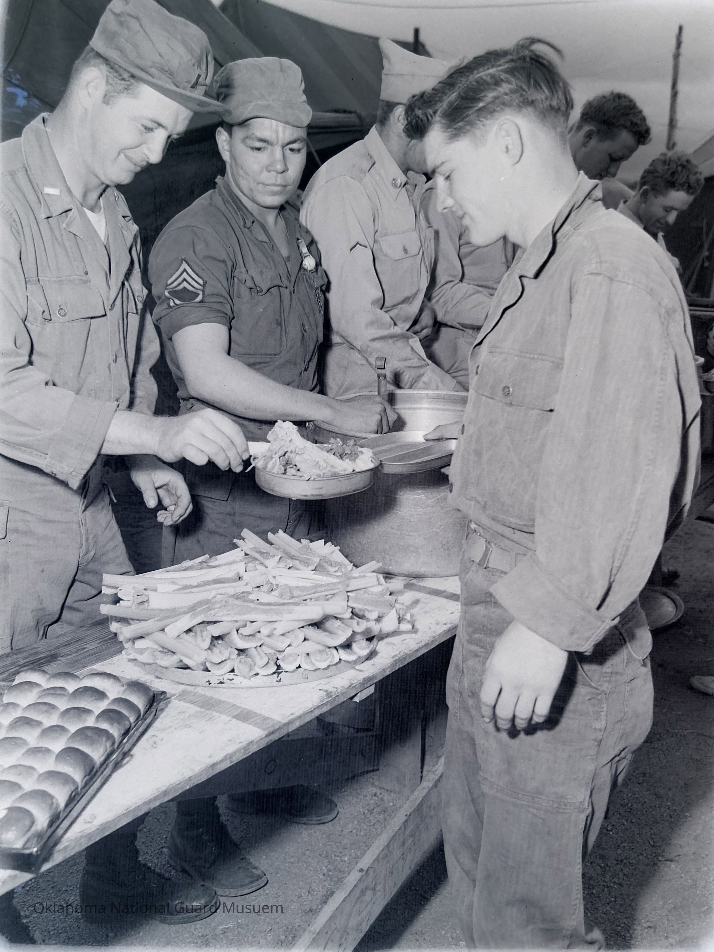 Negative of soldiers going through a chow line on Hokkaido, Japan
