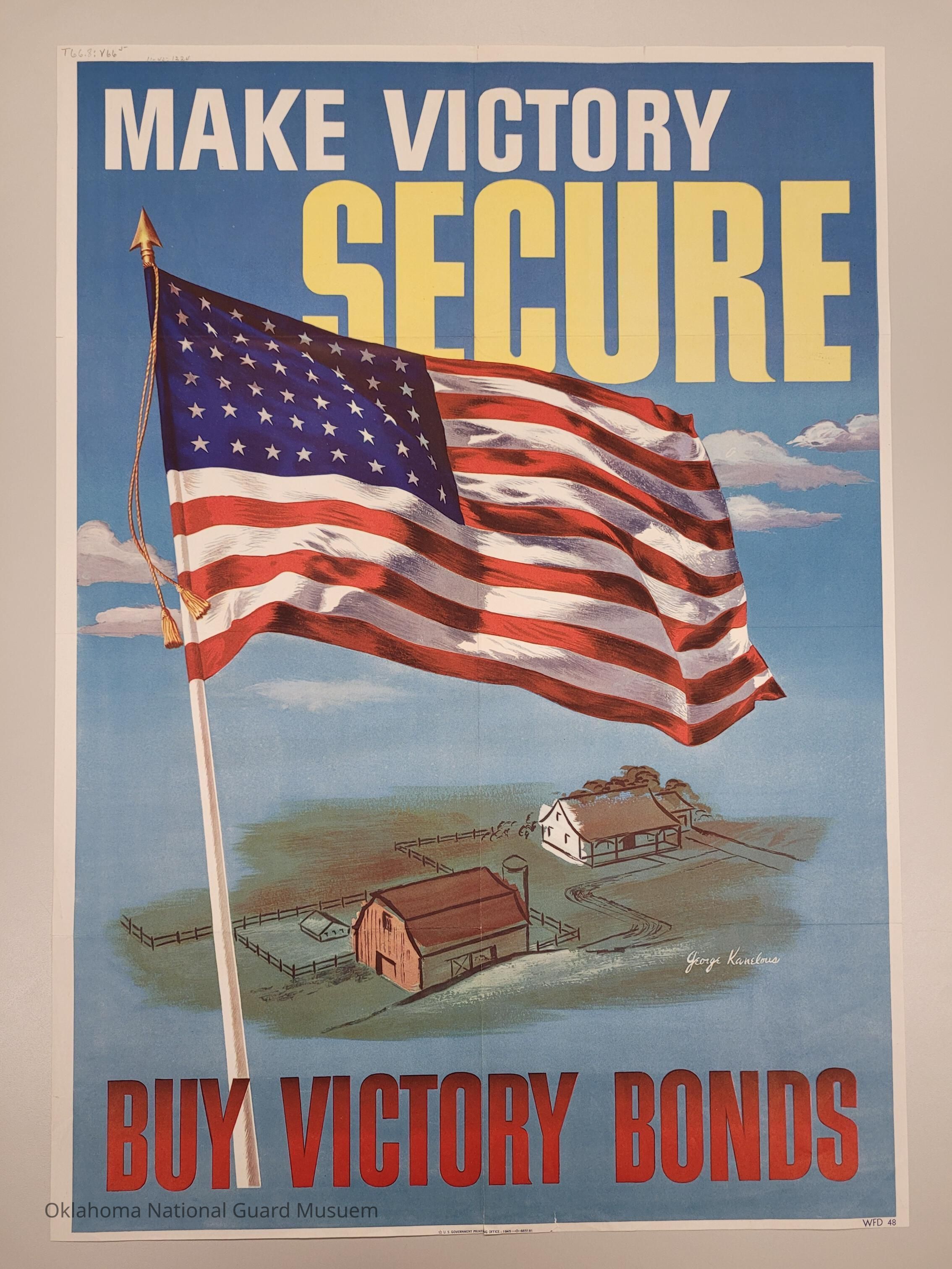 This poster – with a particularly effective image of the American flag flying over a lightly sketched rural farm scene – was painted by George KanelousContext