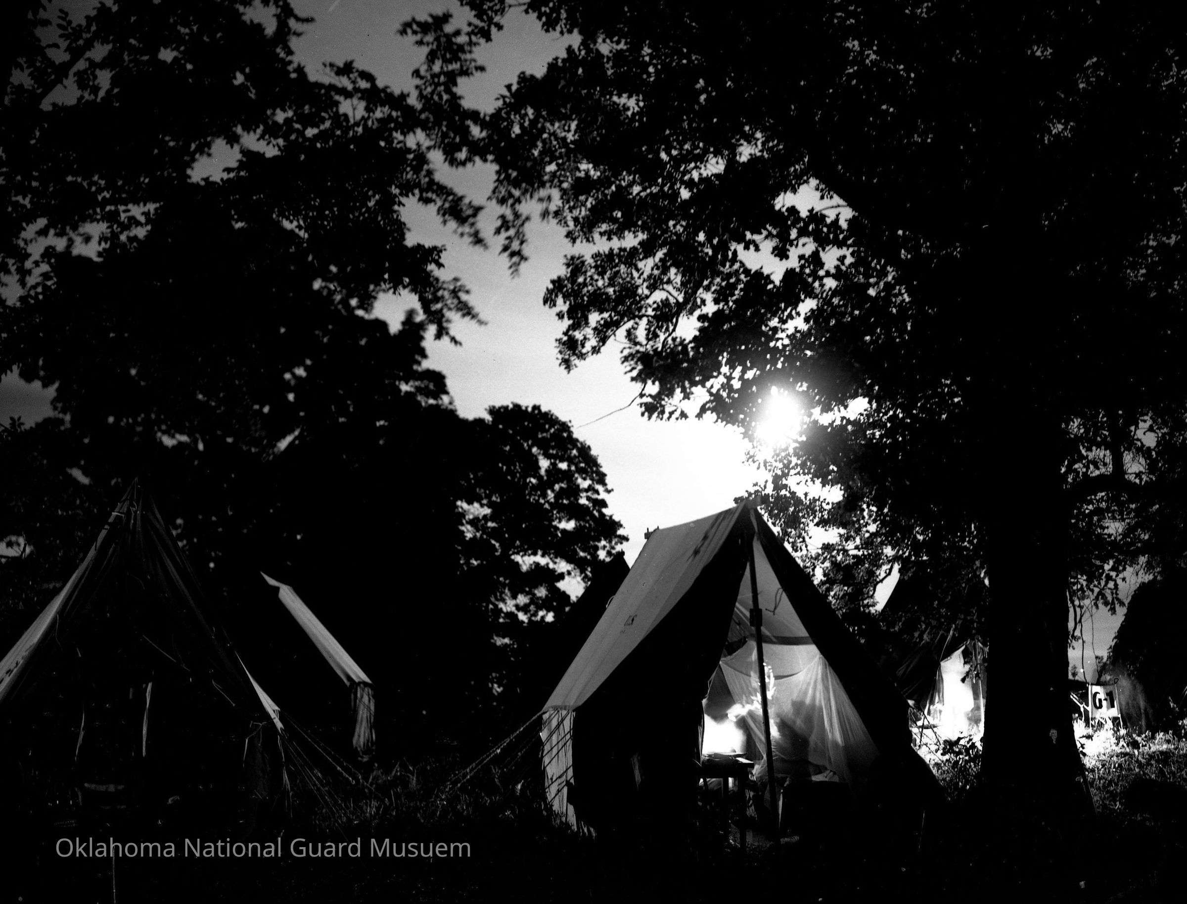 Negative of an evening encampment