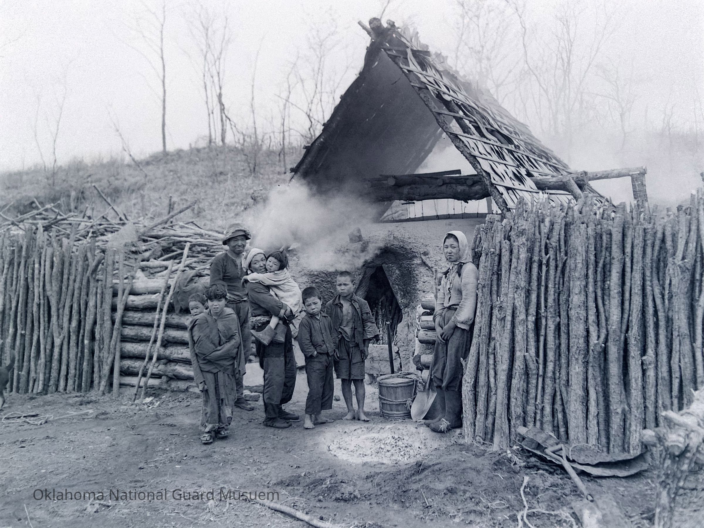 Family, Women, Children, Refugees, Shacks, Wooden buildings, Wood, Huts, Homeless persons, Poor persons, Poverty, Peasants