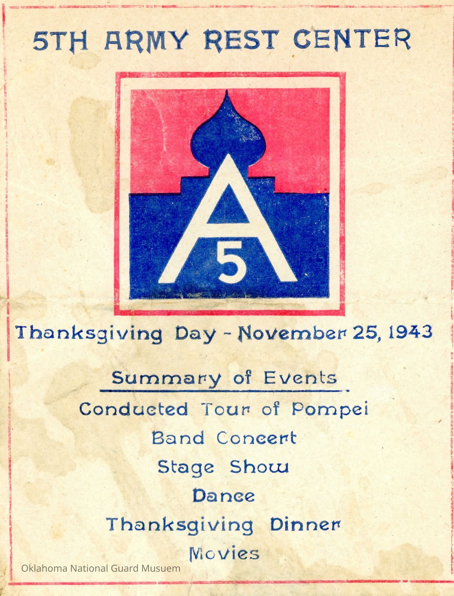 Thanksgiving Day flyer for the Fifth Army Rest Center