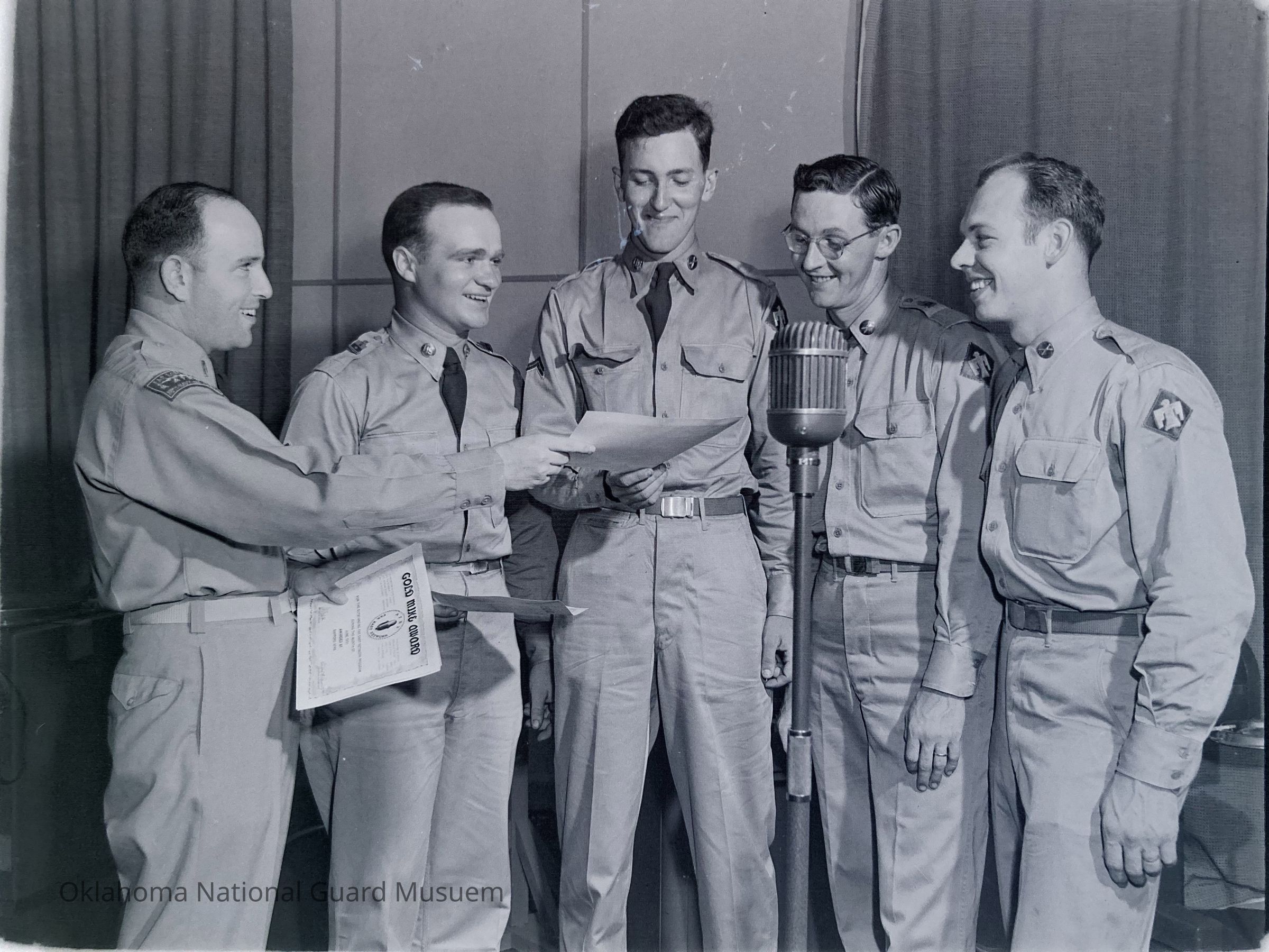 Negative of the "Four-Fifths" quartet receiving an award. Left to right: Jack Goza (Atlanta, GA), Larry Stayer (Tulsa, OK), Bernie Whaley (Canton, OH), and John Mueller (Canton, OH)
