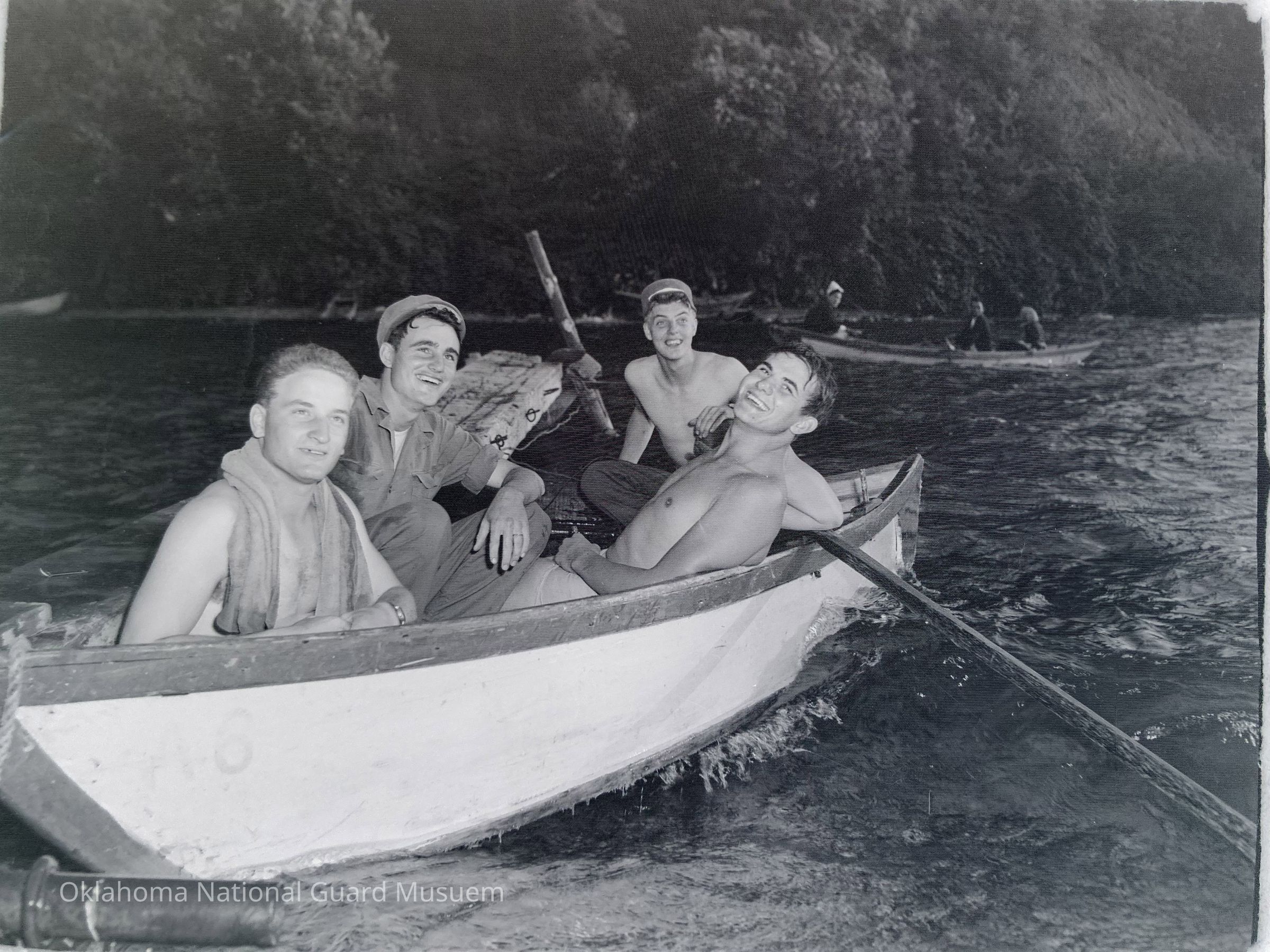 Four soldiers in a rowboat