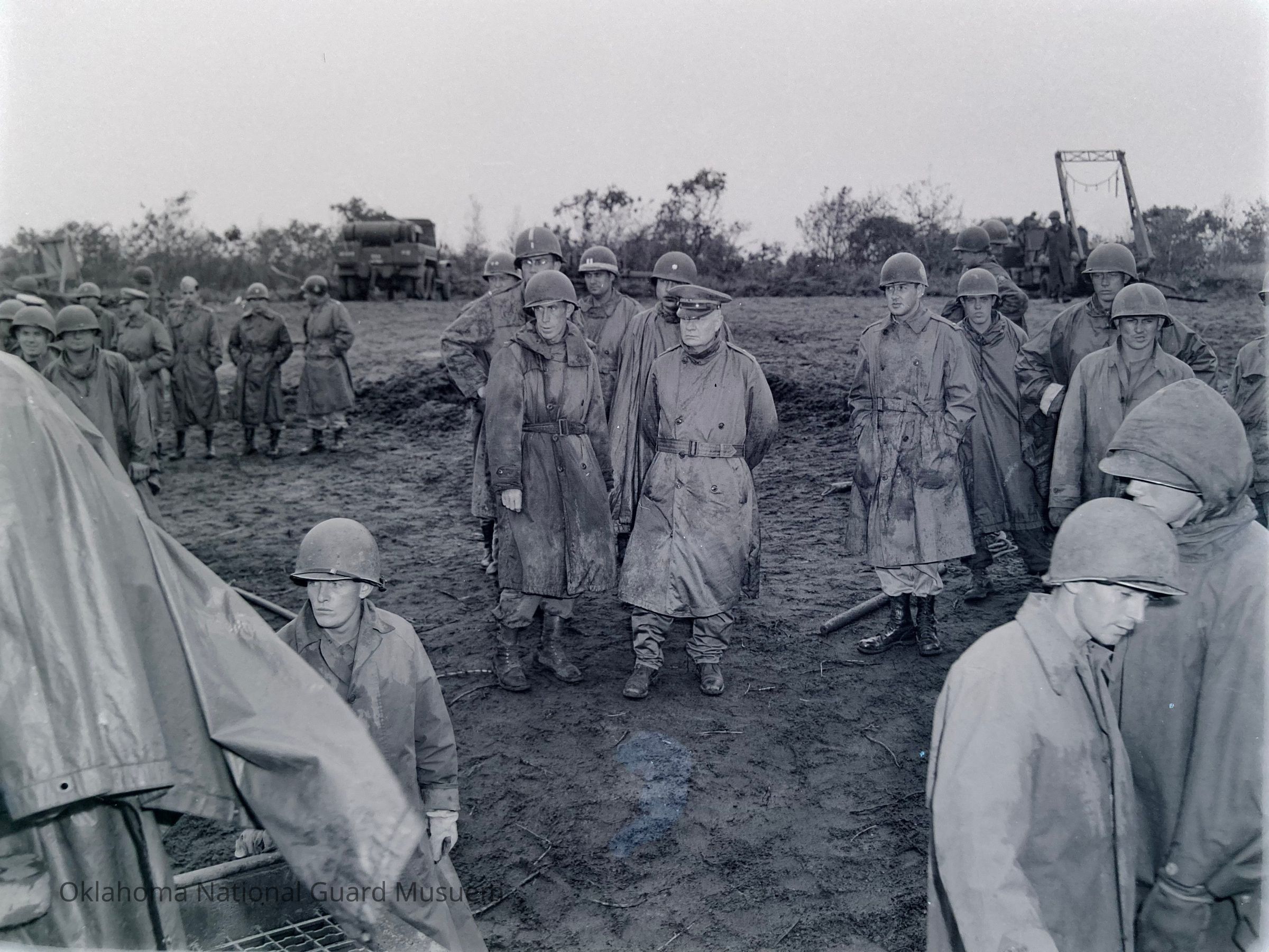 Negative of Major General Roderick Allen, XVI Corps Commanding General, (16th Corps) observing beach landing practice (Operation Lex)