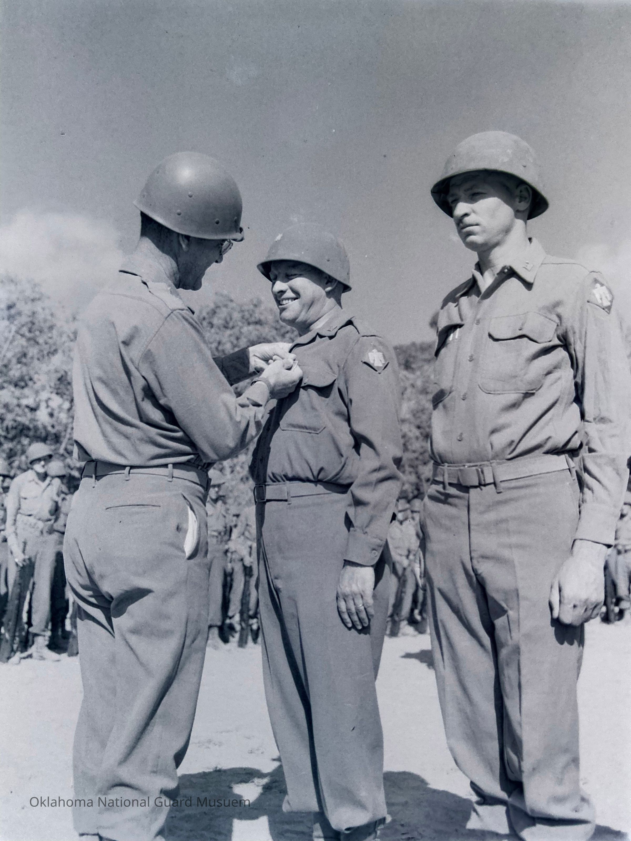 Negative of General Eagles awarding decorations. 120th Engineers