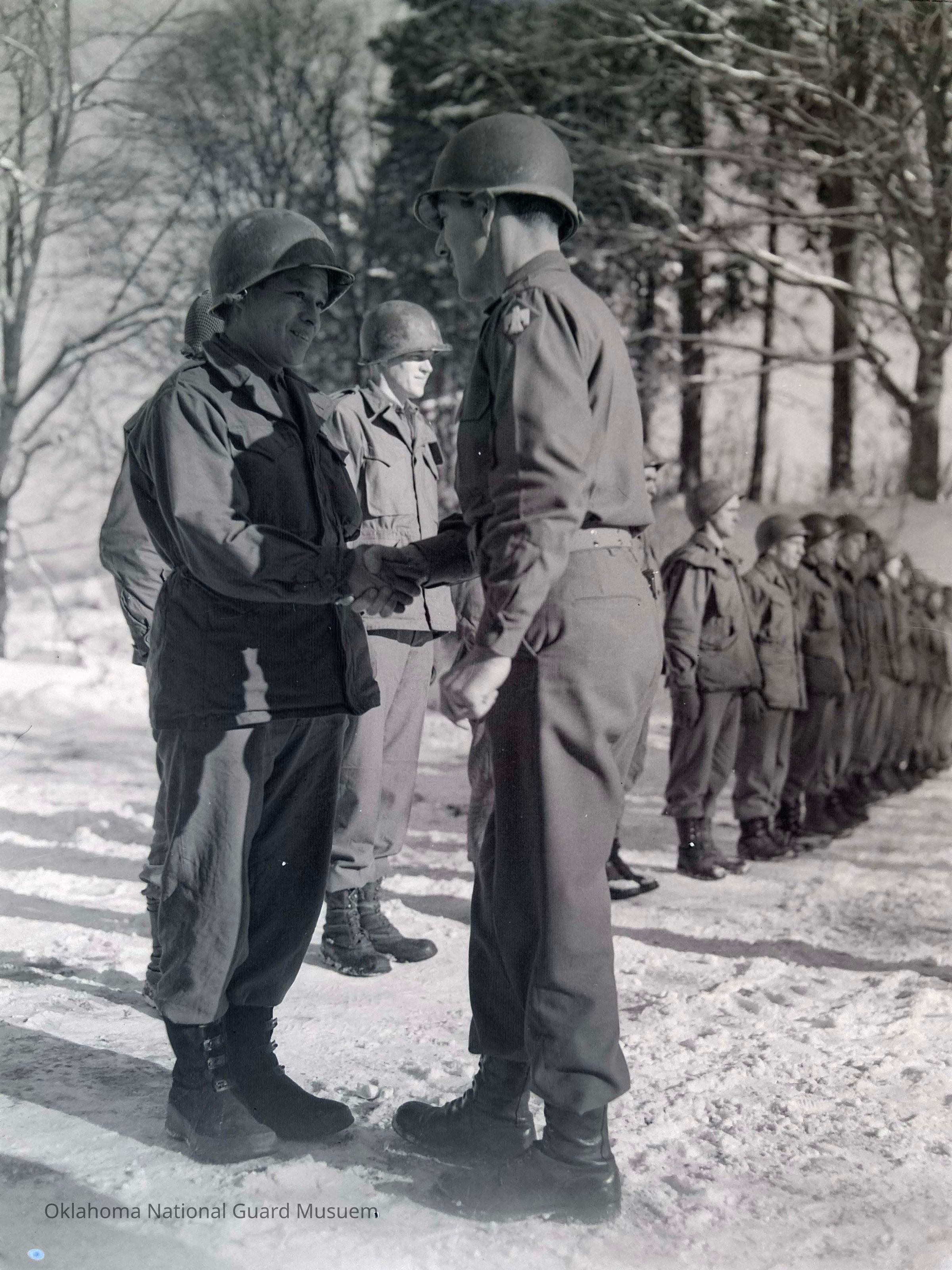 Negative of General Frederick awarding decorations