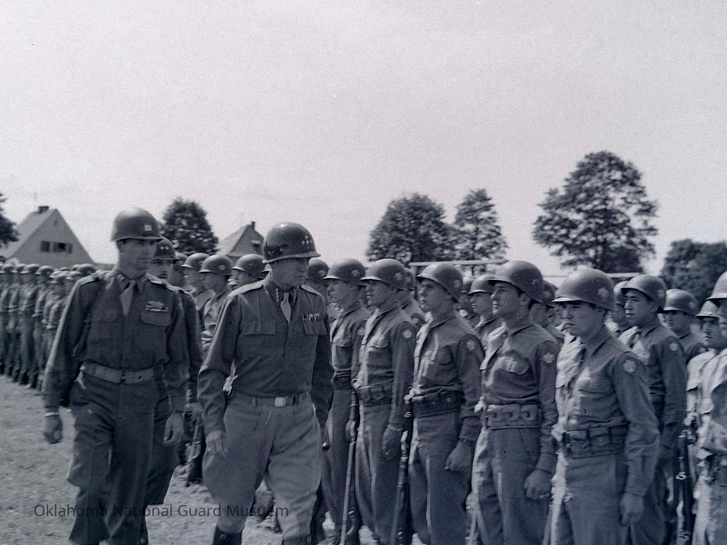 General George Patton reviewing the 45th Division with General Frederick