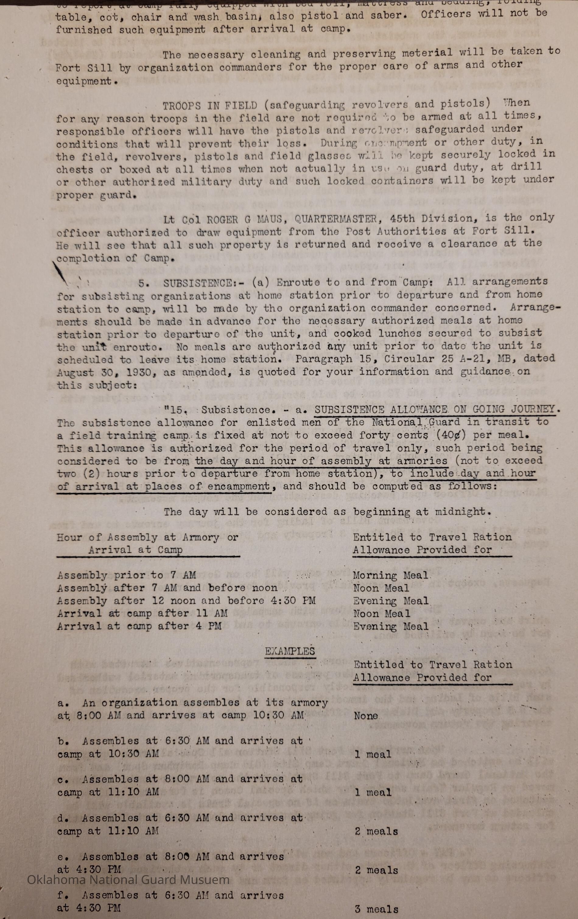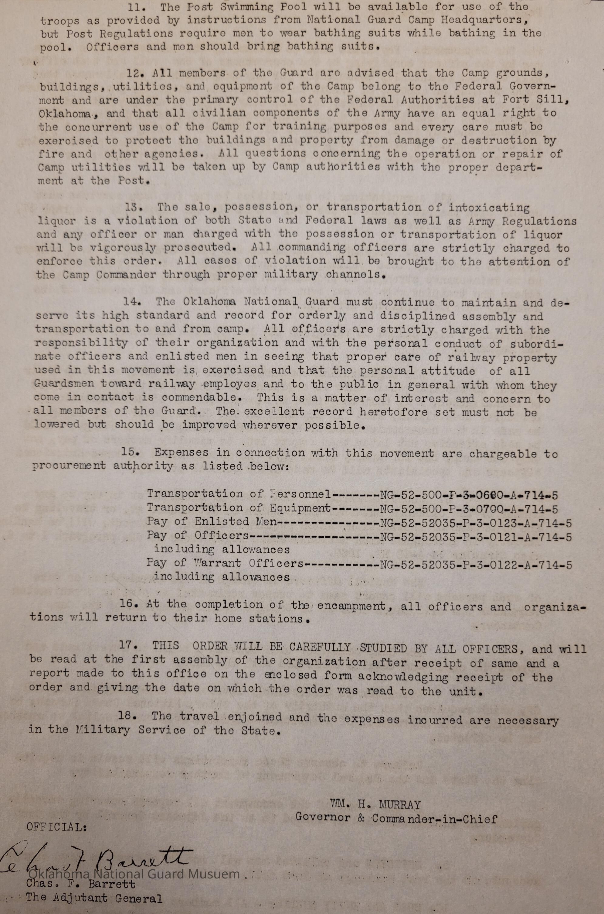 Adjutant General, Oklahoma City, Charles F. Barrett, 45th Division, Camp of Instruction, Fort Sill, Attendance, Pay, Transportation, William H. Murray, Roger G. Maus, Camp General Hugh L Scott, Hugh L. Scott, 120th Medical Regiment, Earl Patterson, Cabell C. Cornish, William G. Stigler, Phillip C. Donnell, 45th Signal Officer, George H. Davis, Charles D. Keller, Rex Bolend, Subsistence