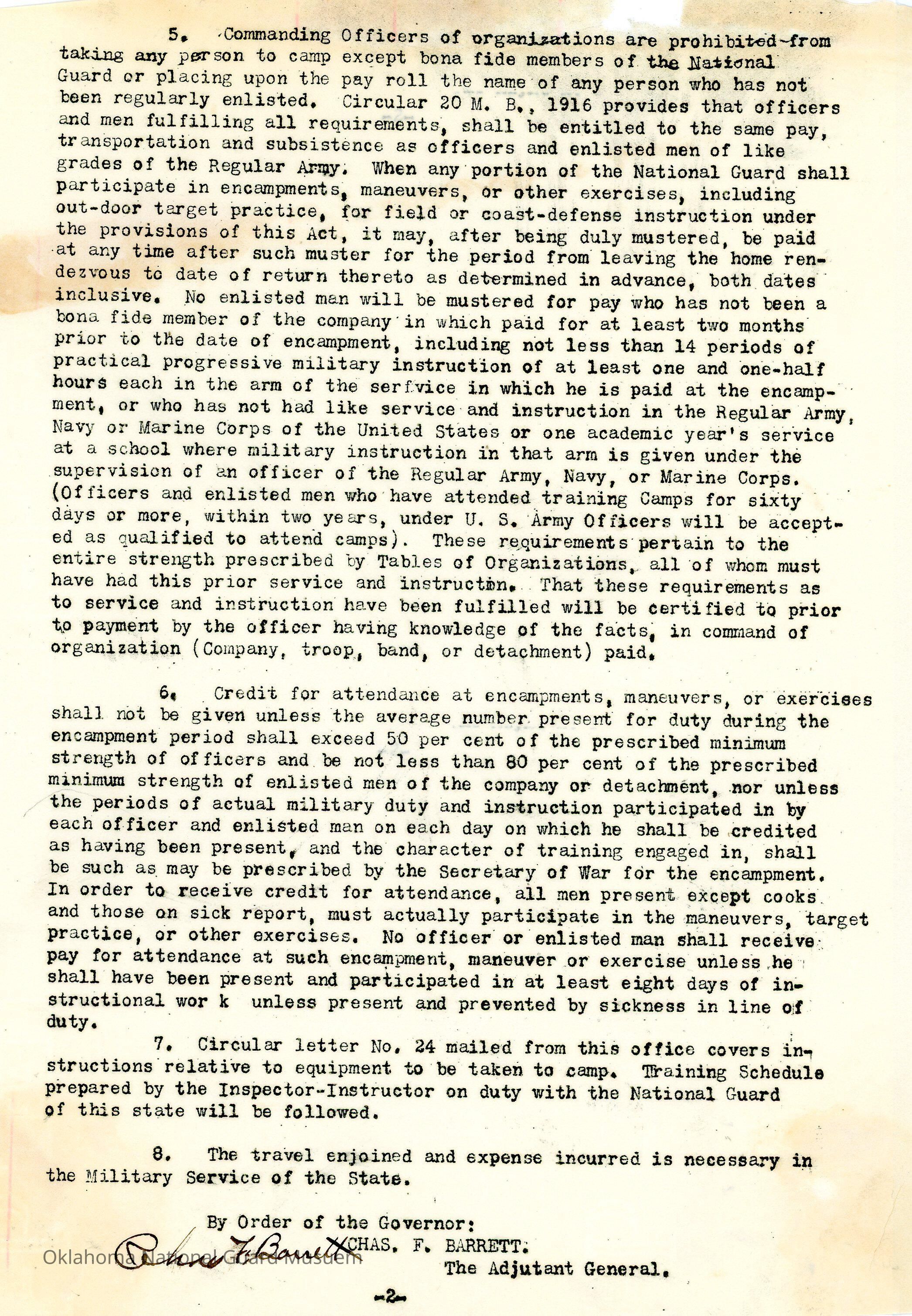 Adjutant General, Oklahoma City, Charles F. Barrett, Fort Sill, State Camp Inspection, Second Regiment, Third Regiment, Charles F. Barrett, Byron Kirkpatrick, S.H. Harrelson, Paul A. Walker, Turner Roark, Walter M. Harrison, Orvel J. Johnson, Charles W. Richards, Earl Patterson, R.H. Wessel, Higlan Mitchell, Howard W. Patton, Joseph J. Clark, Clifford C. Fletcher, Roy Stanley