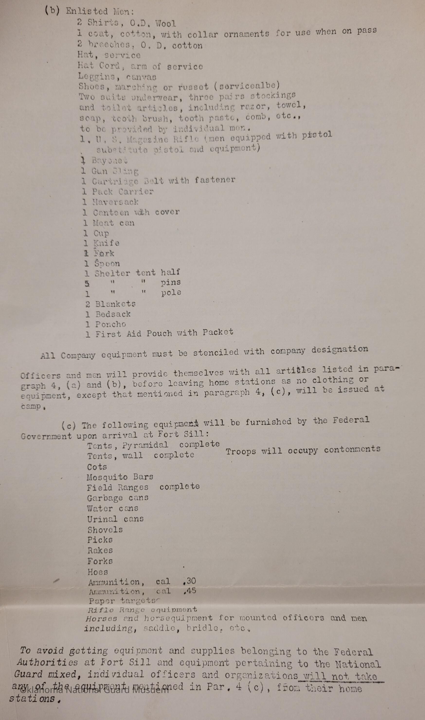 Adjutant General, Oklahoma City, Charles F. Barrett, Camp of Instruction, Second Regiment, Third Regiment, State Administrative Staff, Equipment, U.S. Property and Disbursing Officer, Fort Sill