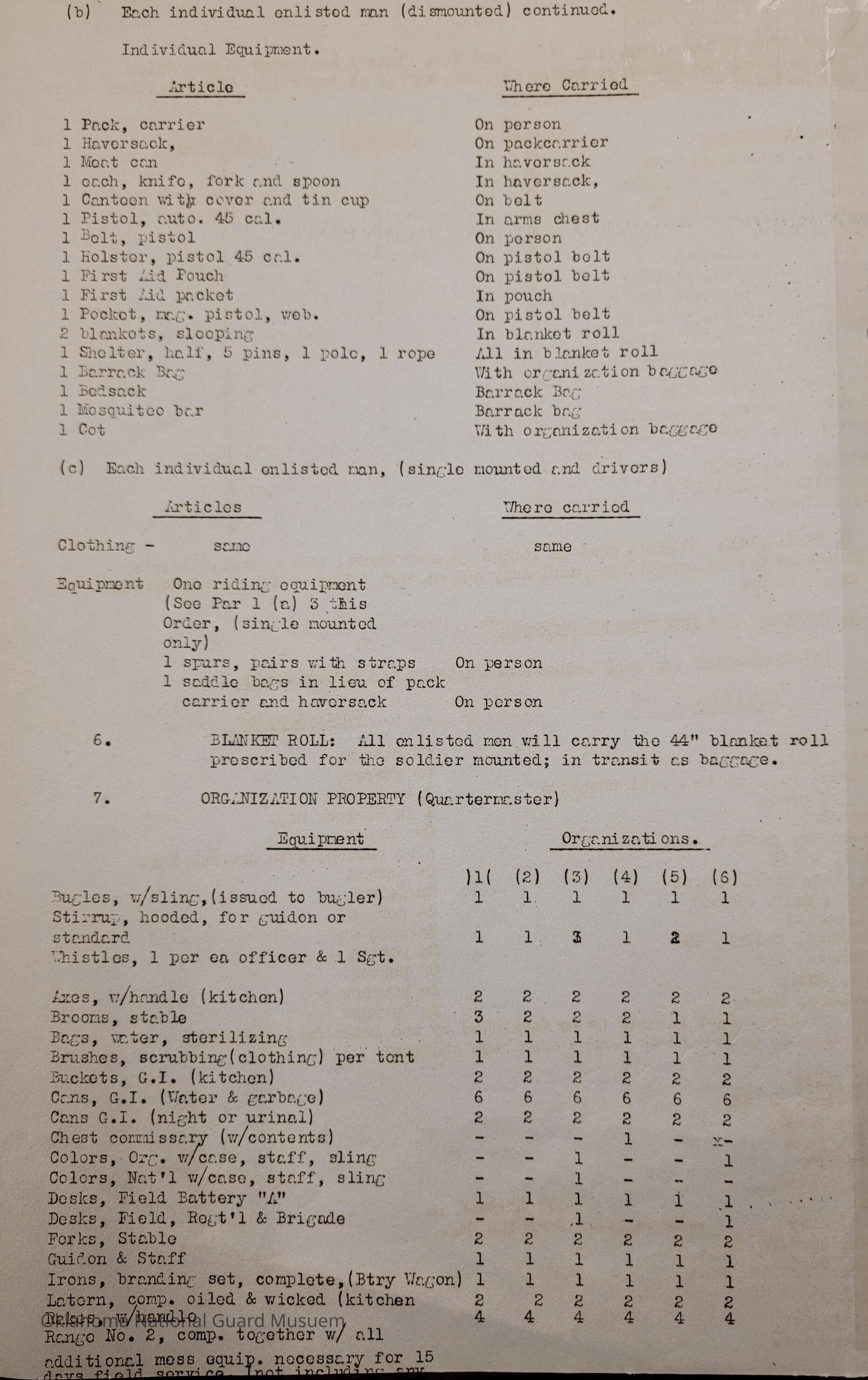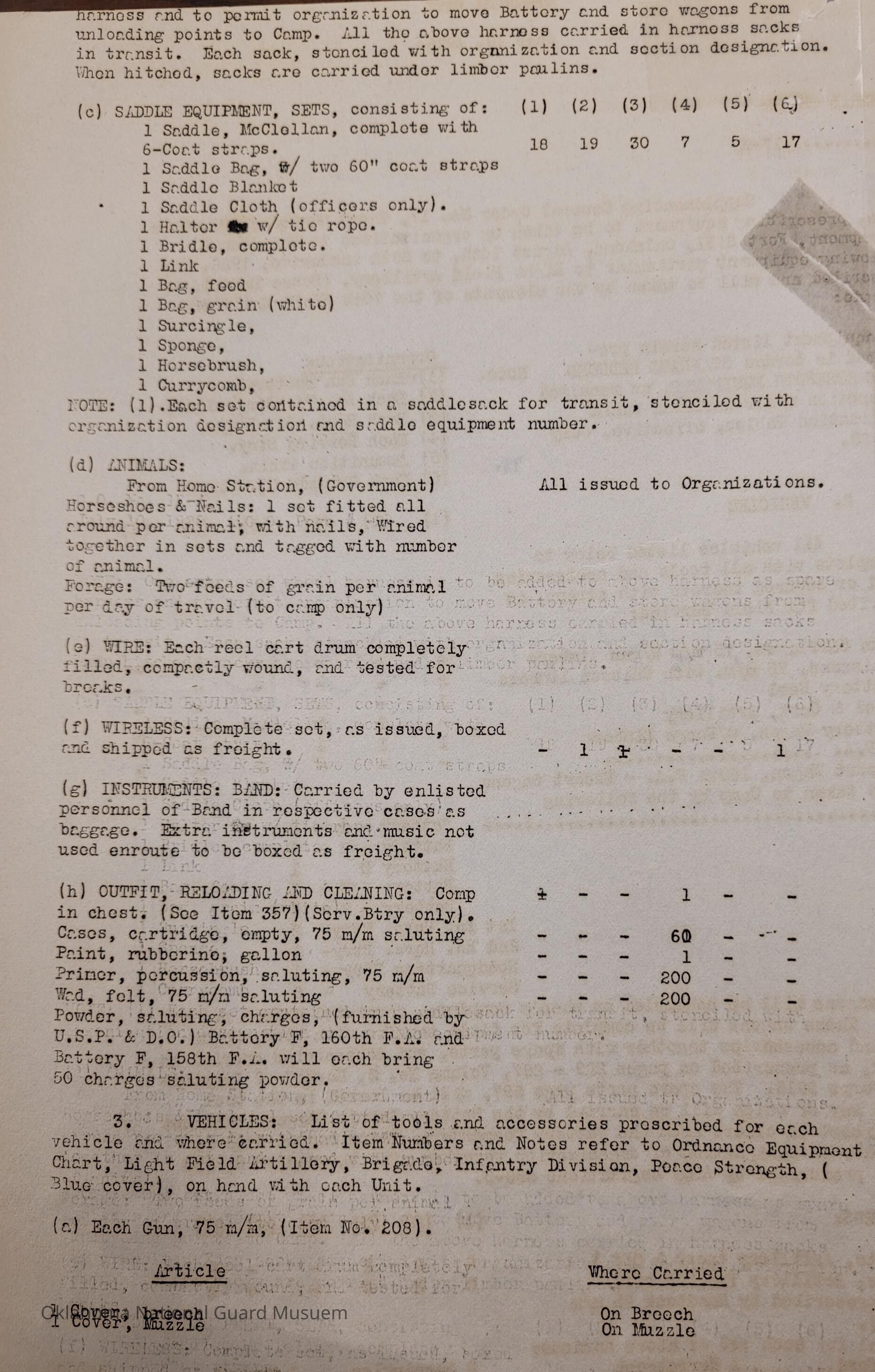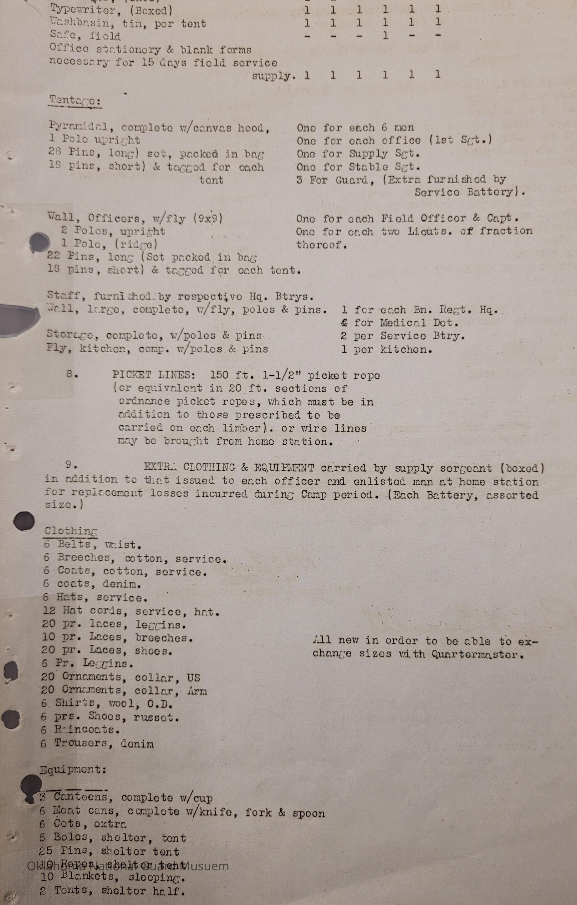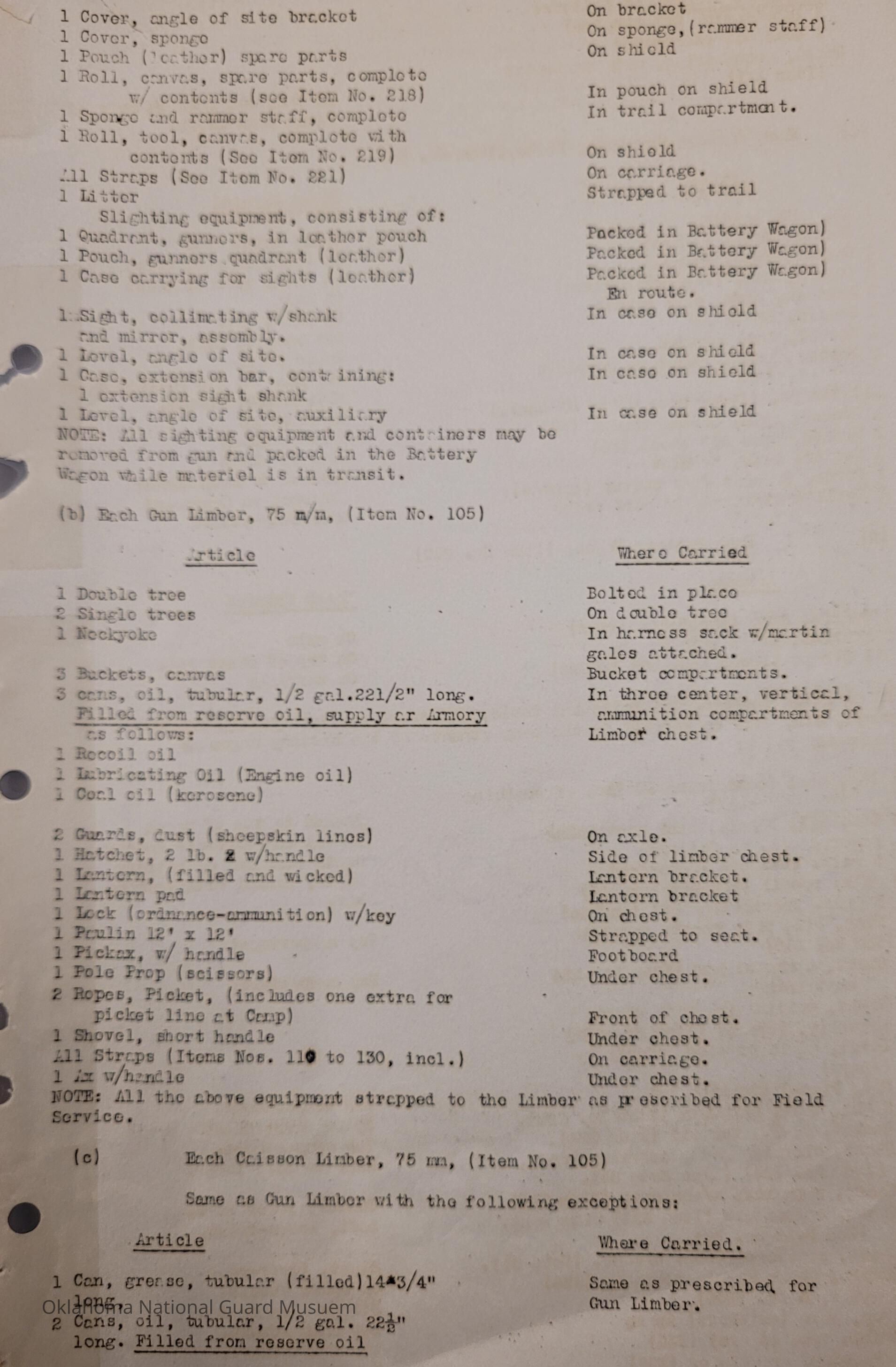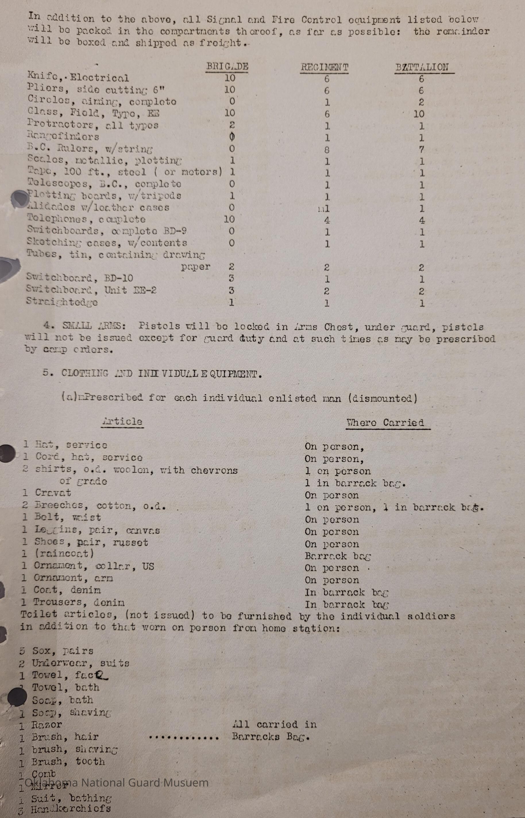 General Order #17-A from Headquarters Adjutant General's Office in Oklahoma City. The order supplements General Order 17 and details what equipment, particular to Light Field Artillery, should be taken to the annual encampmentDate(s) of Creation