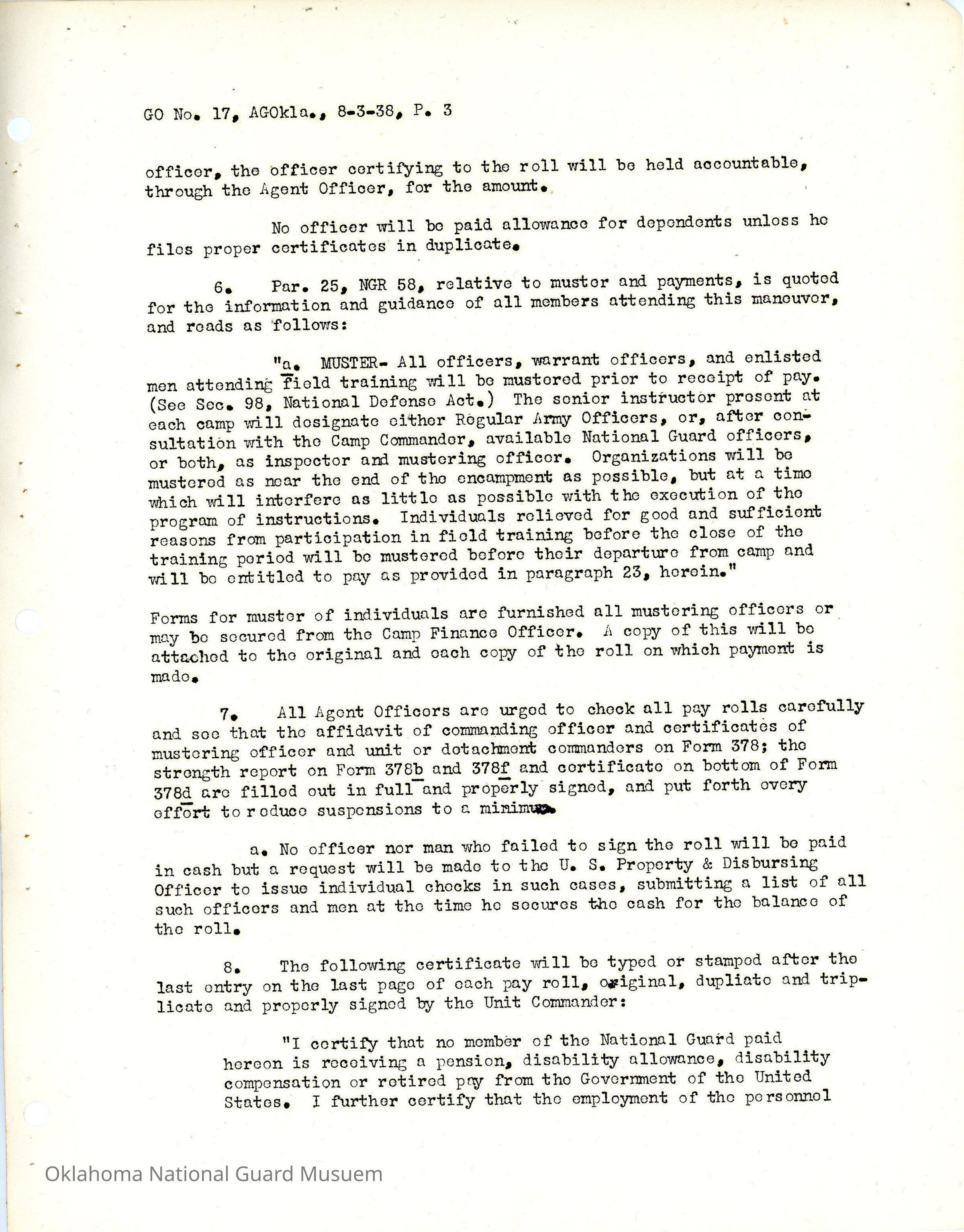 General Order #18 from Headquarters Adjutant General's Office in Oklahoma City. The order details the instructions for drivers and convoy commandersDate(s) of Creation