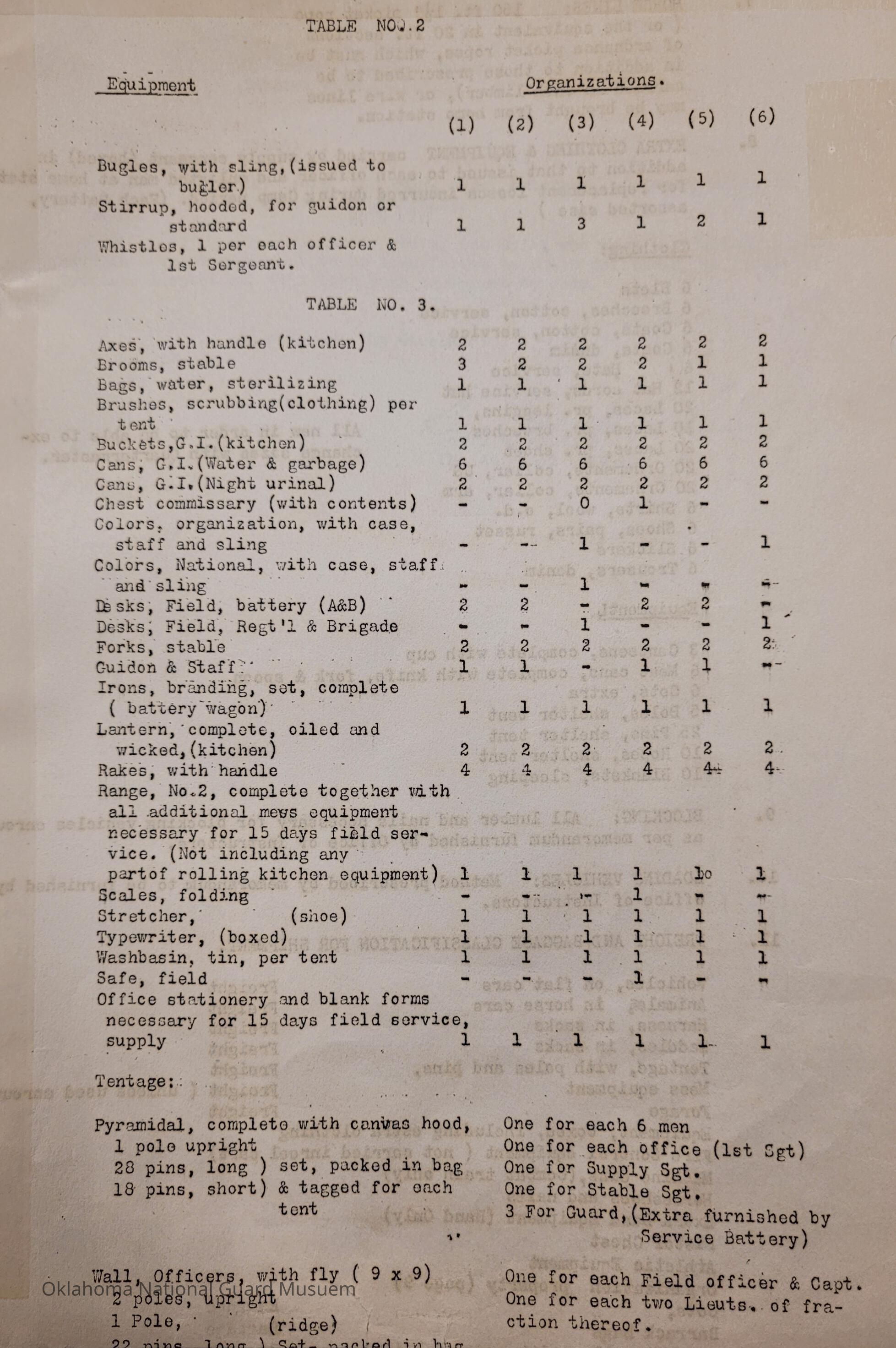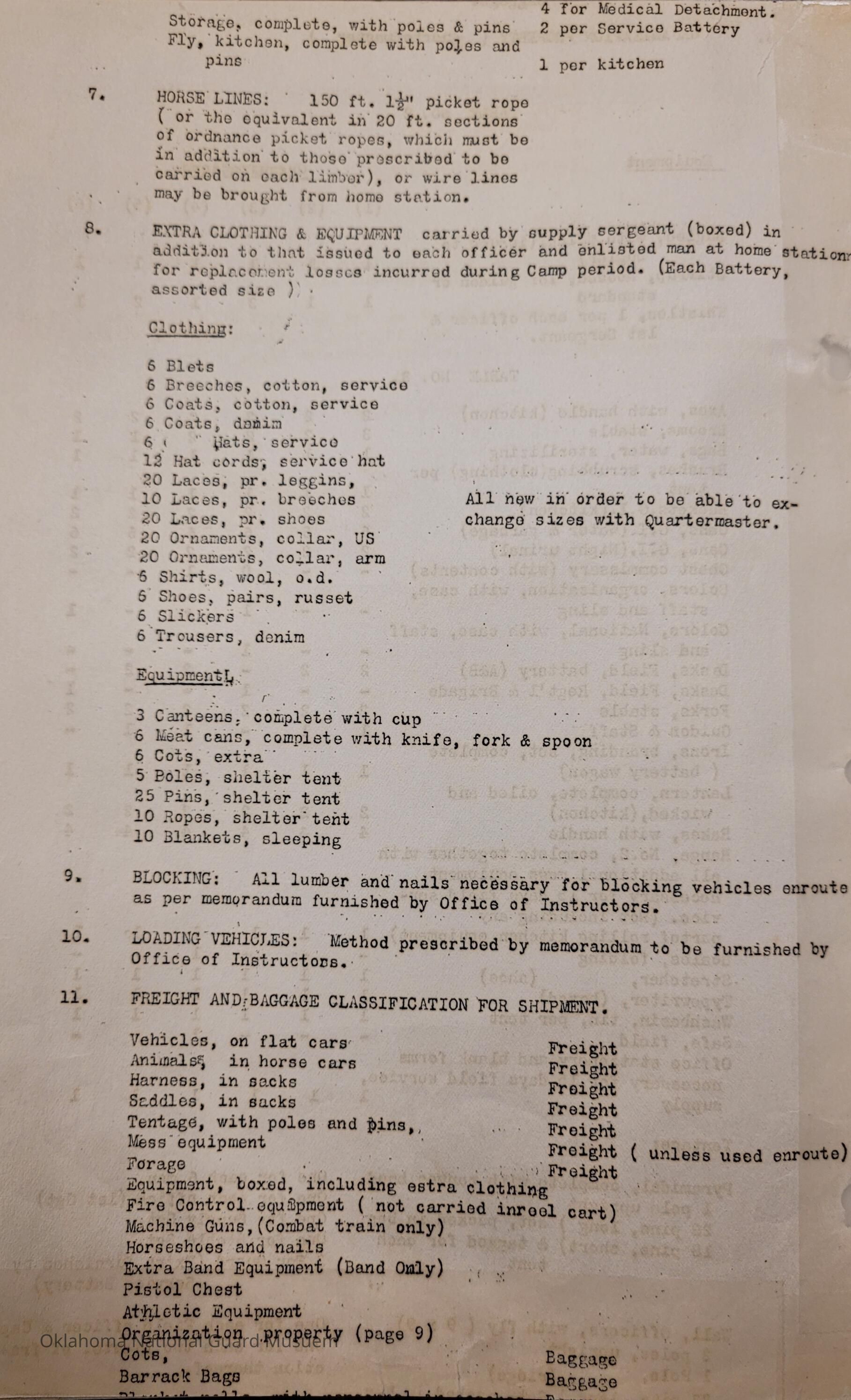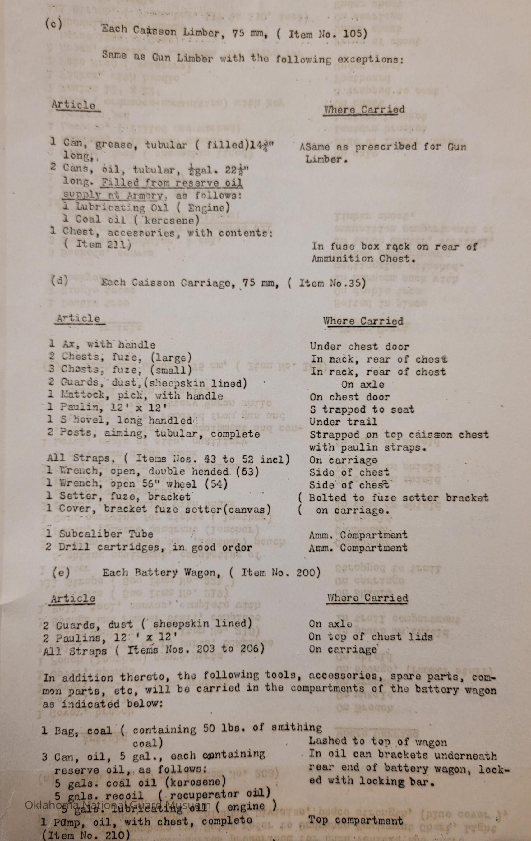 General Order #19-A from Headquarters Adjutant General's Office in Oklahoma City. The order supplements General Order 19 and details what equipment, particular to Light Field Artillery, should be taken to the annual encampmentDate(s) of Creation