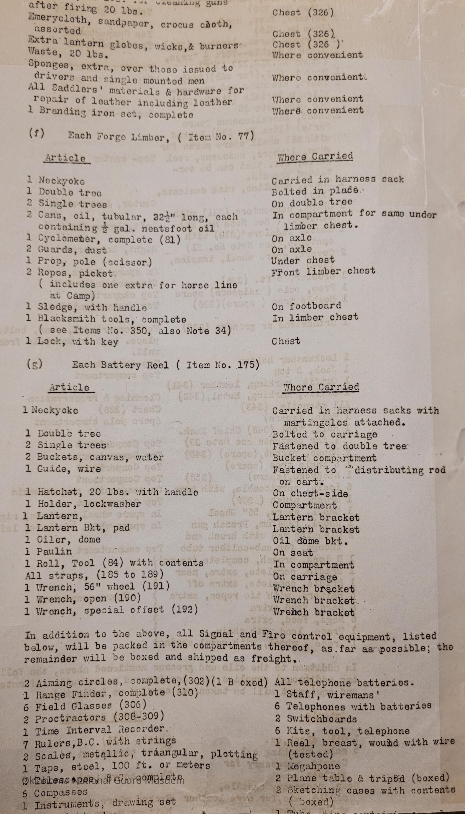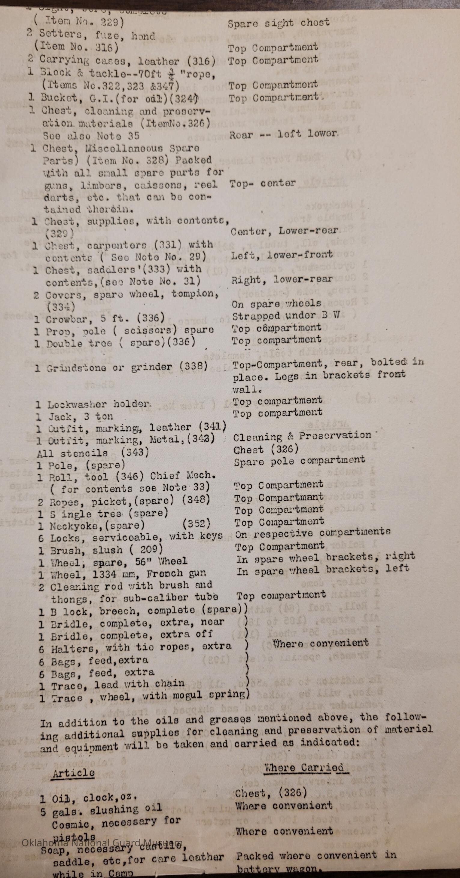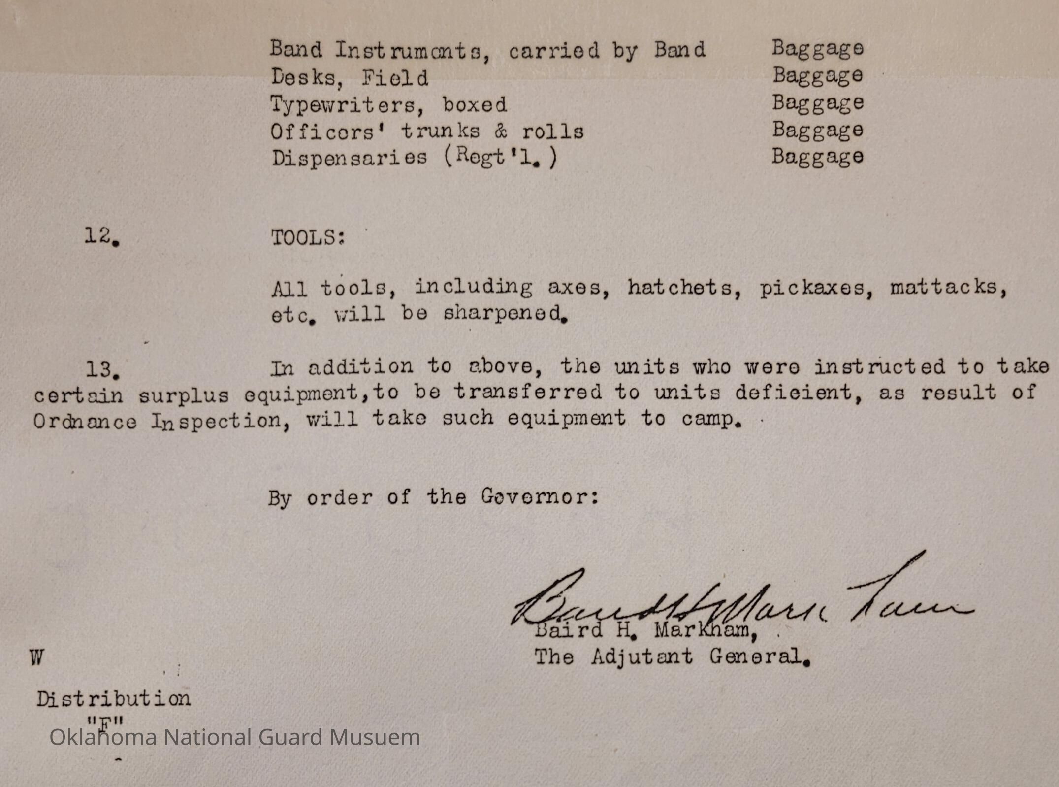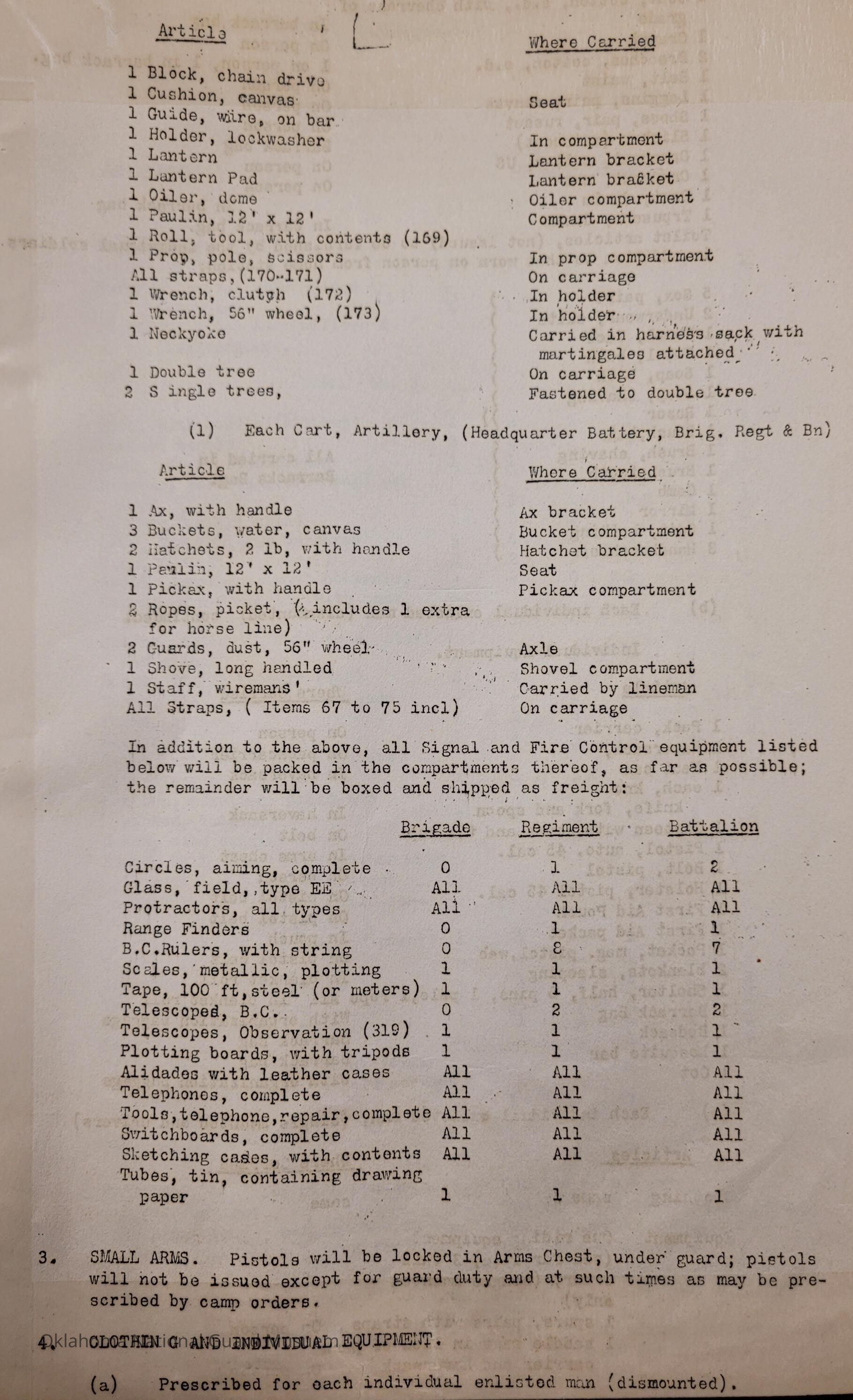 General Order #19-A from Headquarters Adjutant General's Office in Oklahoma City. The order supplements General Order 19 and details what equipment, particular to Light Field Artillery, should be taken to the annual encampmentDate(s) of Creation