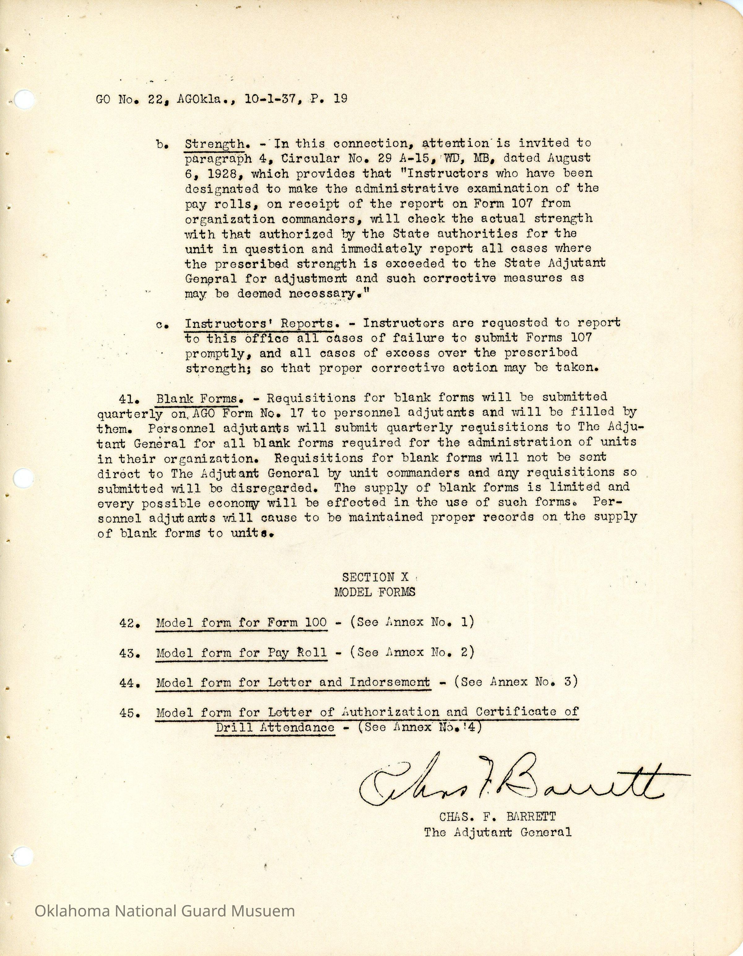 Adjutant General, Oklahoma City, Charles F. Barrett, Personnel, Personnel records, Personnel Adjutants, Officers, Enlisted Men, Correspondence, Orders, Forms 100, Pay Rolls, Model Forms