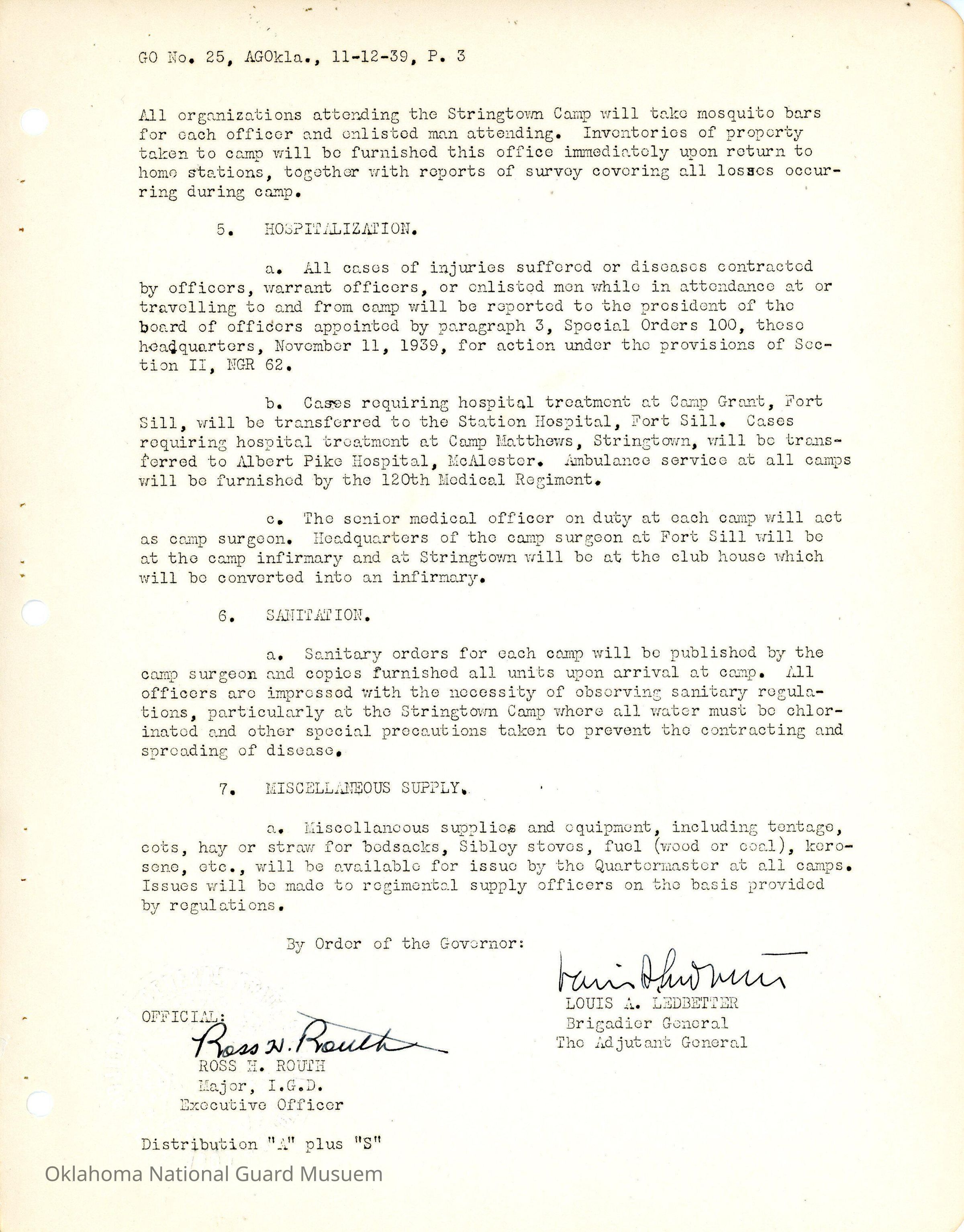 Adjutant General, Oklahoma City, Louis A. Ledbetter, Ross H. Routh, Training, Travel