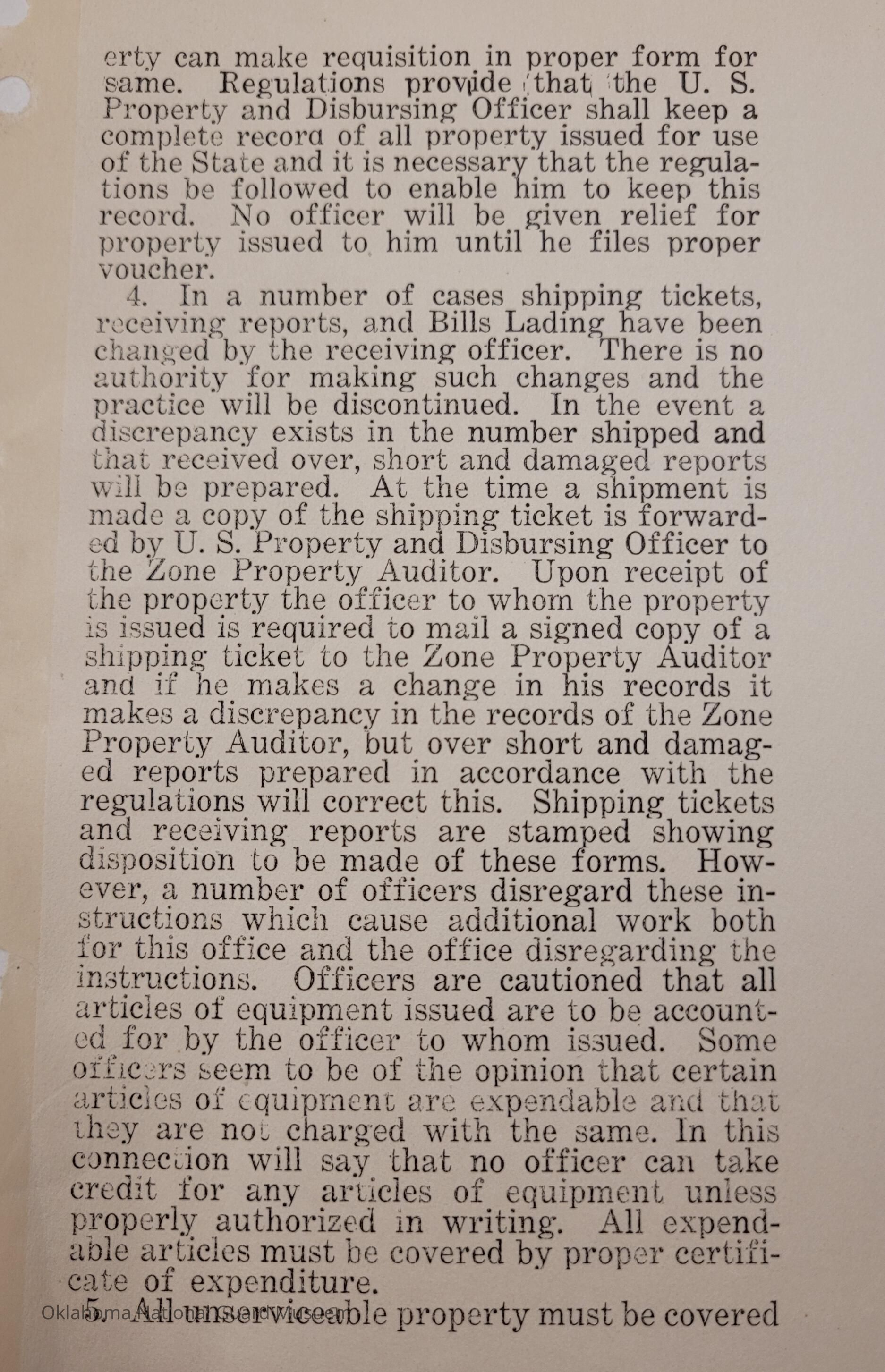 Adjutant General, Oklahoma City, Charles F. Barrett, U.S. Property and Disbursing Officer, Coal strikes, Property, Equipment