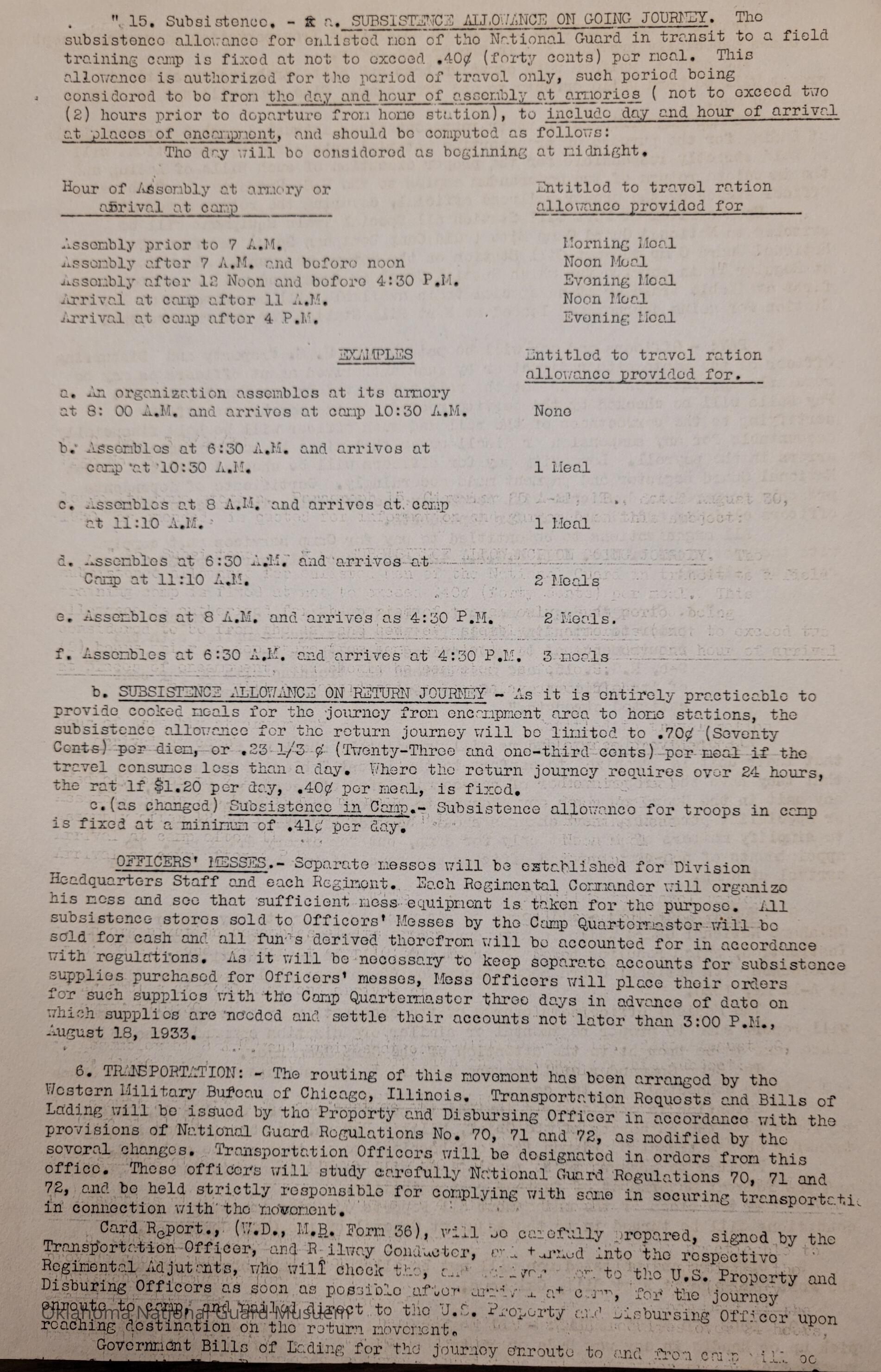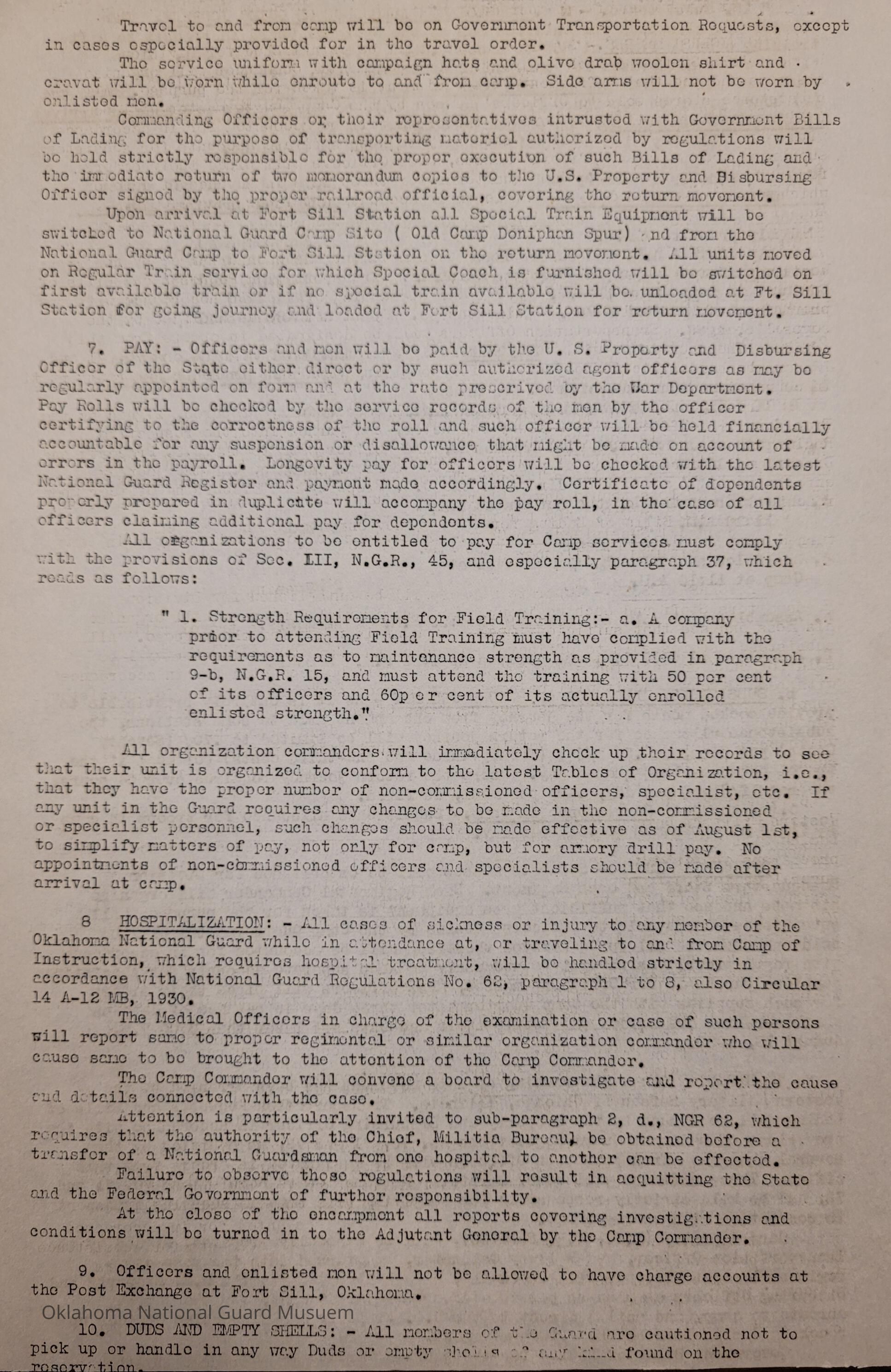 General Order #3 from Headquarters Adjutant General's Office in Oklahoma City. The order details the equipment, attendance, transportation, and pay for the Annual Camp of Instruction at Camp WallisDate(s) of Creation