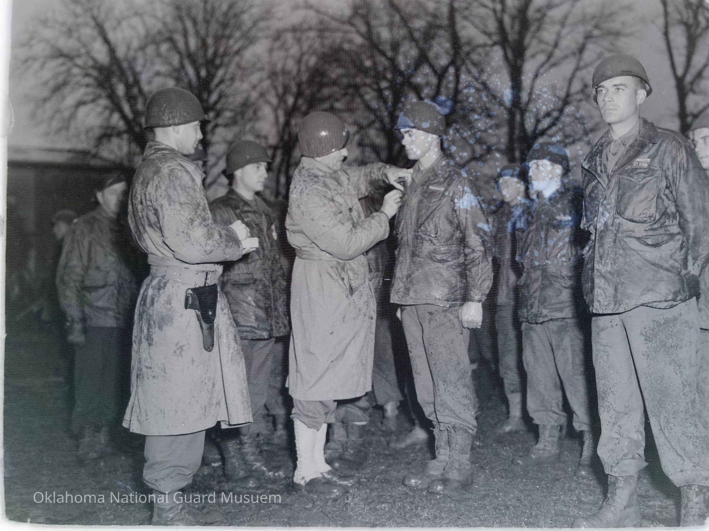 Negative of General Alexander Patch awarding decorations