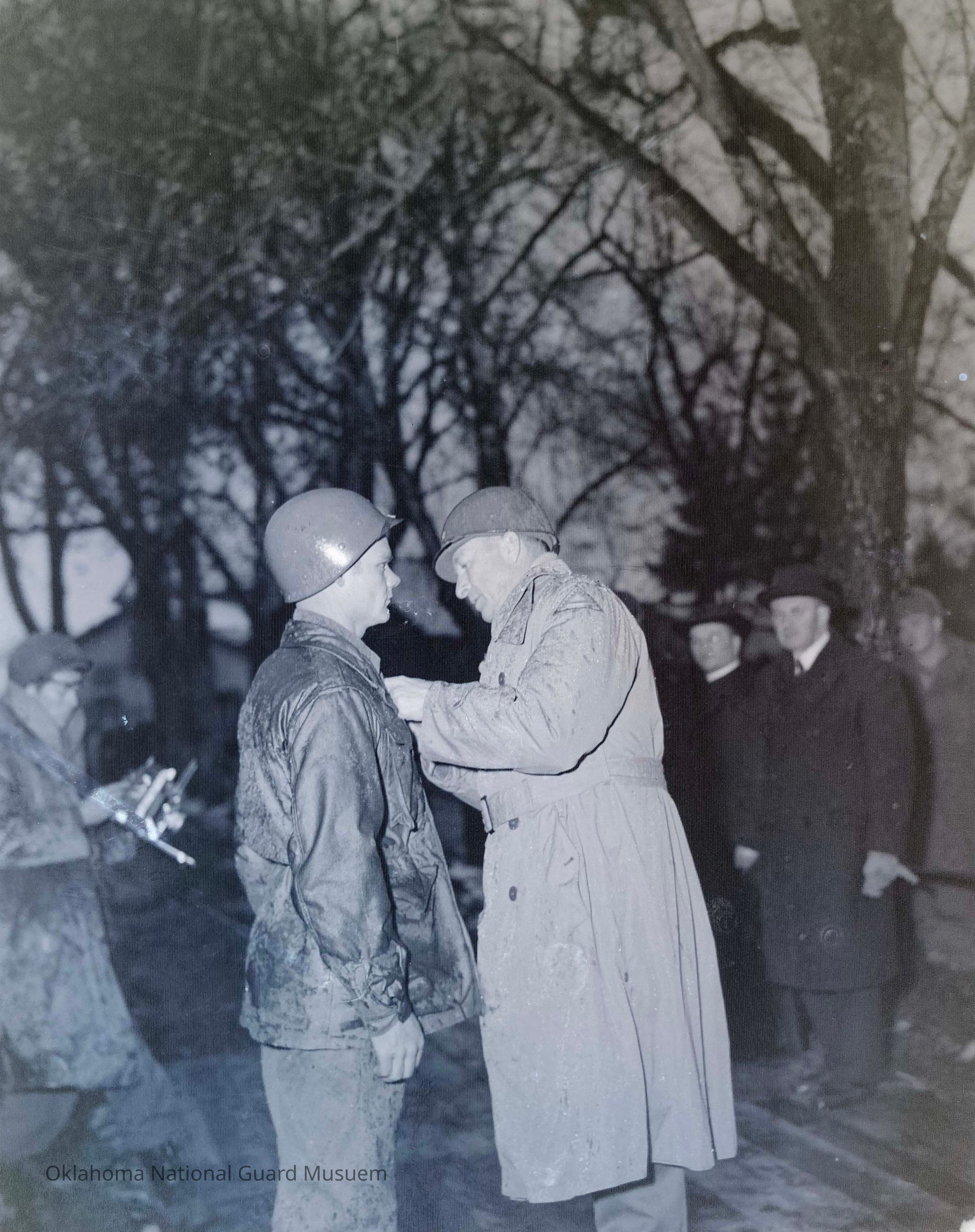 Negative of General Patch decorating soldiers