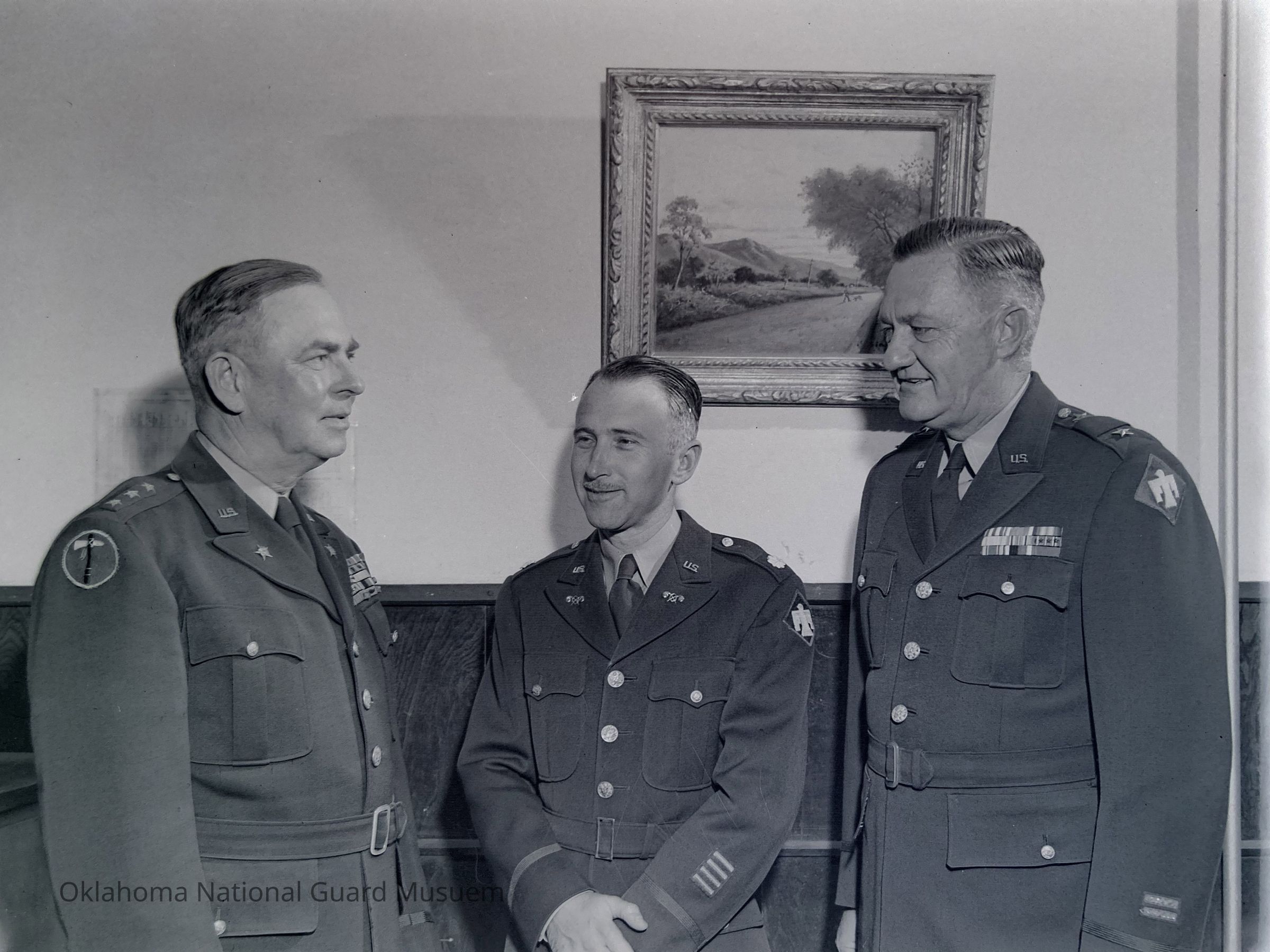 Negative of Generals McClain and Styron with another officer on Hokkaido, Japan