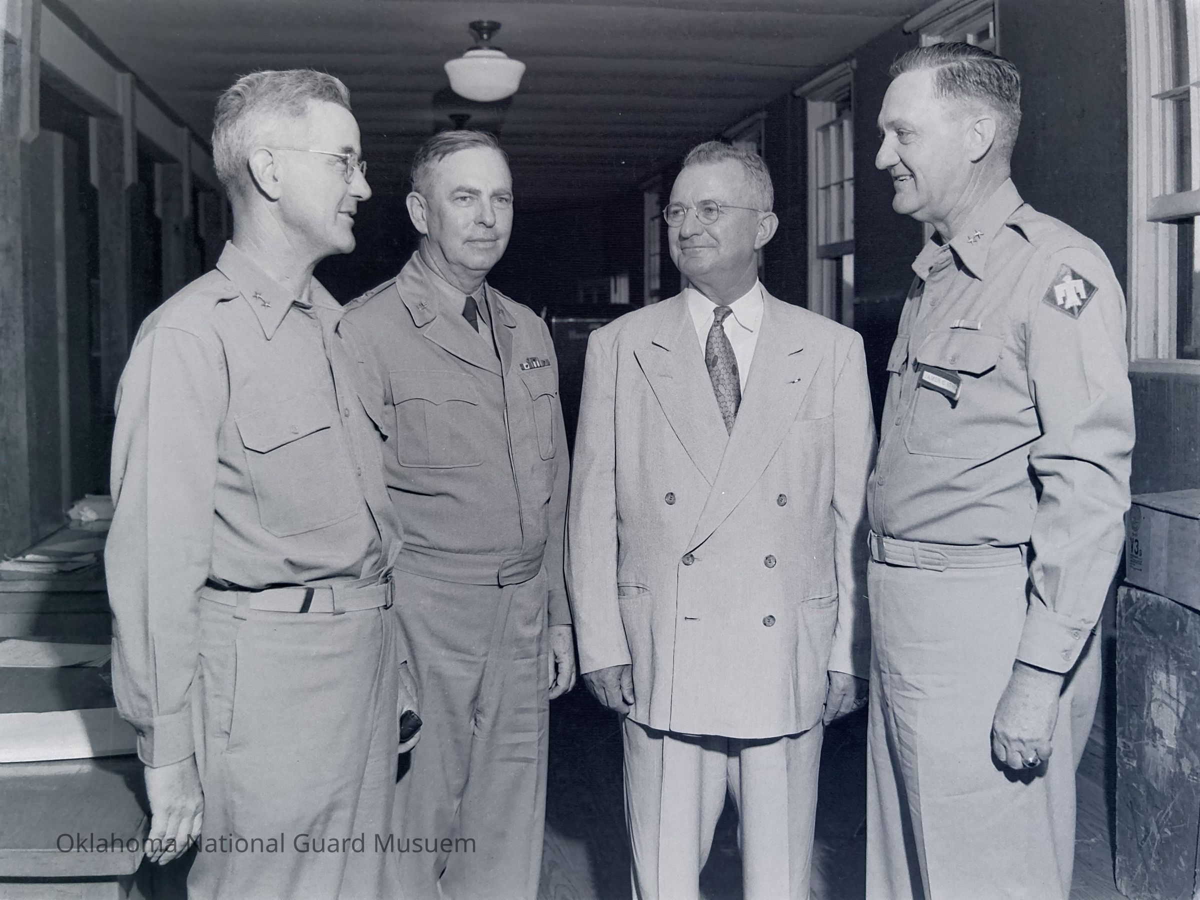 Generals Styron, Eagles, McLain, Middleton conversing in an office
