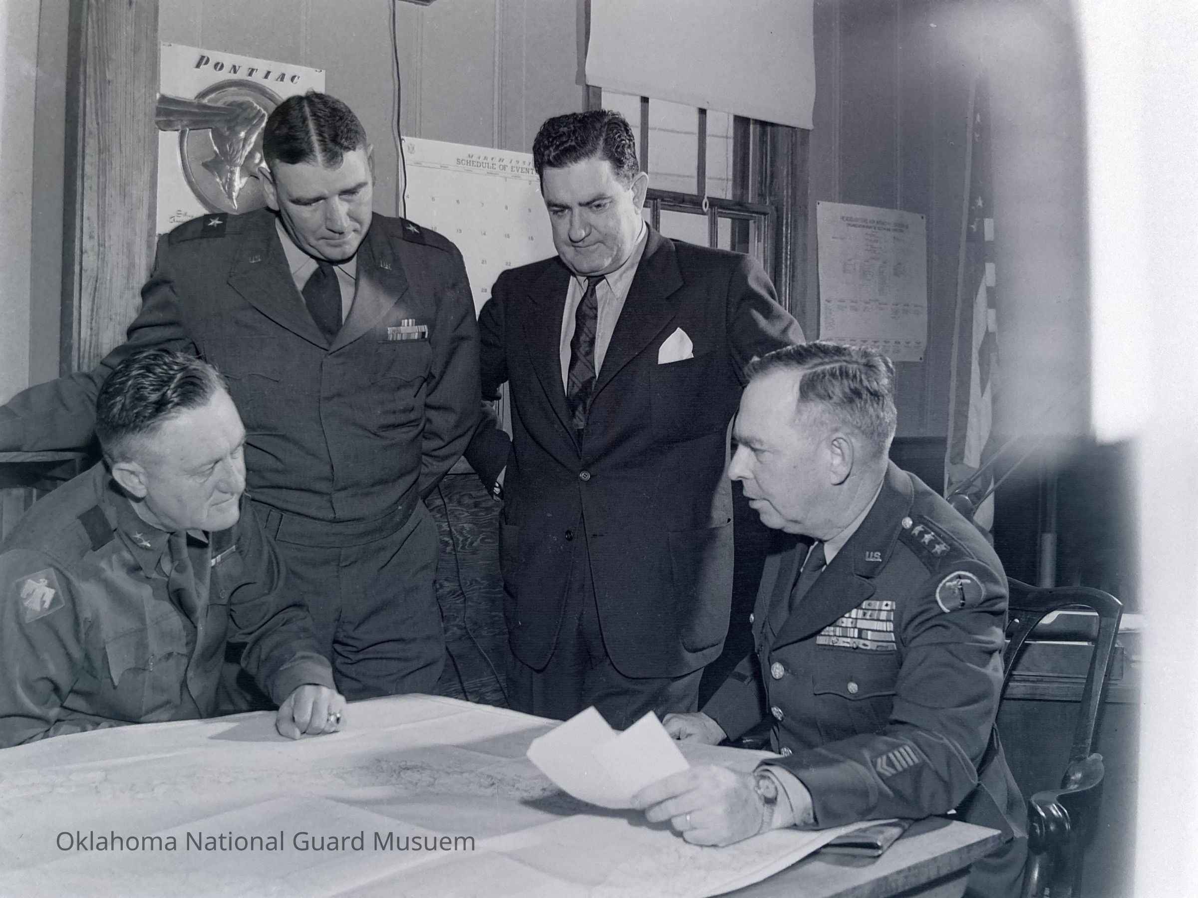 Generals Styron, Muldrow, and McLain conversing with Jess Larson