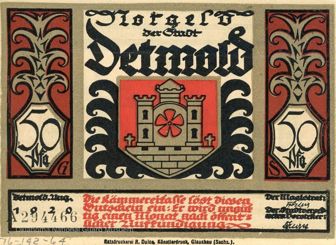 German City of Detmold Fifty Pfennig Notgeld