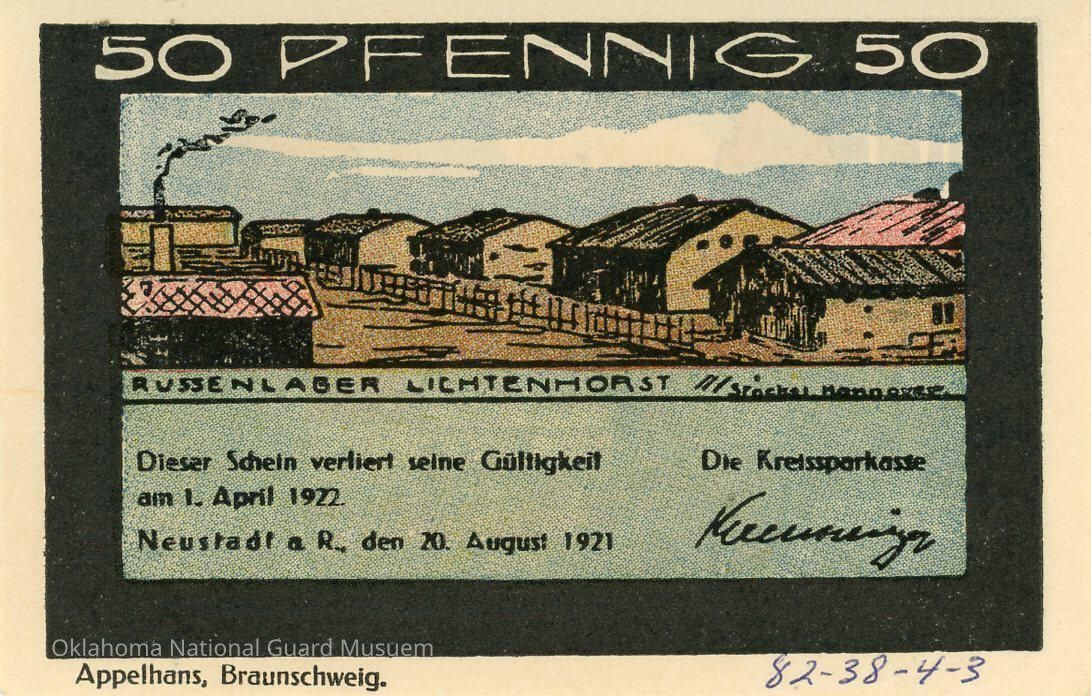Notgeld is money issued by an institution in a time of economic or political crisis. The issuing institution is usually one without official sanction from the central government. This occurs usually when sufficient state-produced money is not available from the central bank. Most notably, notgeld generally refers to money produced in Germany and Austria during World War I and the Interbellum. Issuing institutions could be a town's savings banks, municipality and private or state-owned firms. Nearly all issues contained an expiry date, after which time they were invalid. Issues without dates ordinarily had an expiry announced in a newspaper or at the place of issuance.Collection