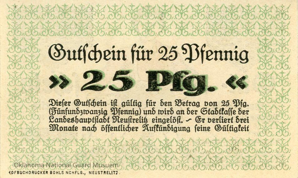 German City of Neustrelitz Twenty-Five Pfennig Notgeld-1920Context