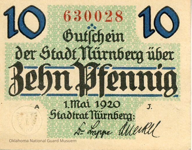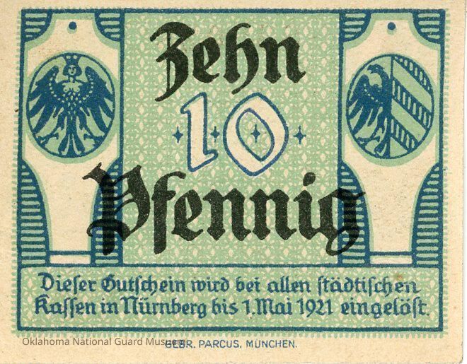 Notgeld refers to money issued by an institution in a time of economic or political crisis. The issuing institution is usually one without official sanction from the central government. This occurs usually when sufficient state-produced money is not available from the central bank. Most notably, notgeld generally refers to money produced in Germany and Austria during World War I and the Interbellum. Issuing institutions could be a town's savings banks, municipality and private or state-owned firms. Nearly all issues contained an expiry date, after which time they were invalid. Issues without dates ordinarily had an expiry announced in a newspaper or at the place of issuance.