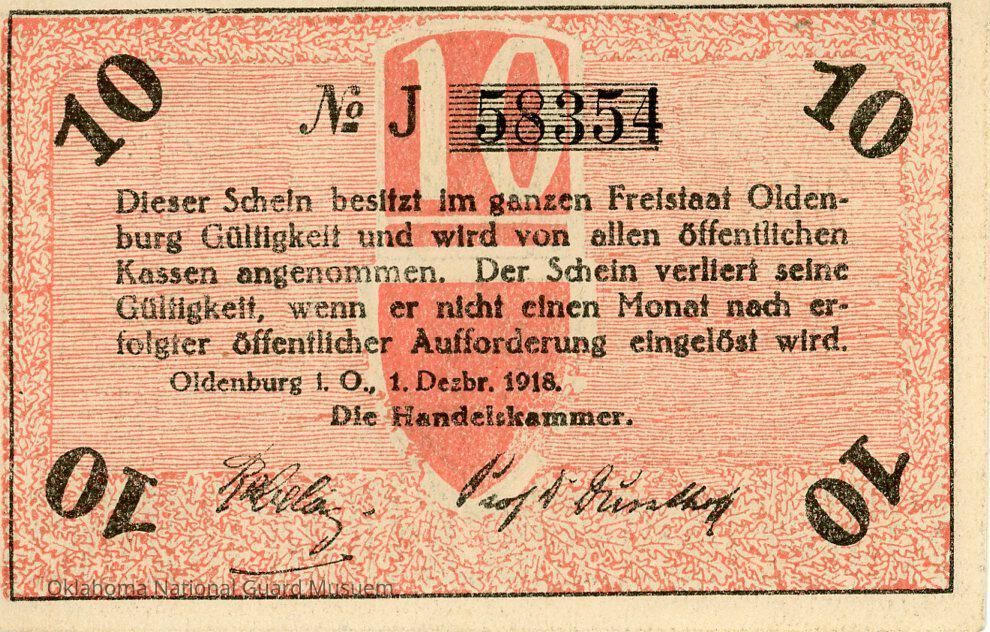 German City of Oldenburg Ten Pfennig Notgeld-1918Context