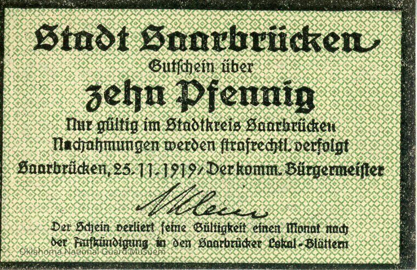 German City of Saarbrucken Ten Pfennig Notgeld-1919Context